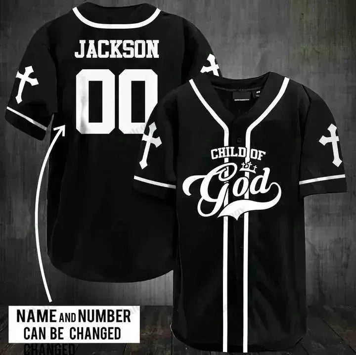 Personalized Jesus Baseball Jersey - Cross Baseball Jersey - Gift For Christians - Child of God Custom Printed 3D Baseball Jersey Shirt For Men Women