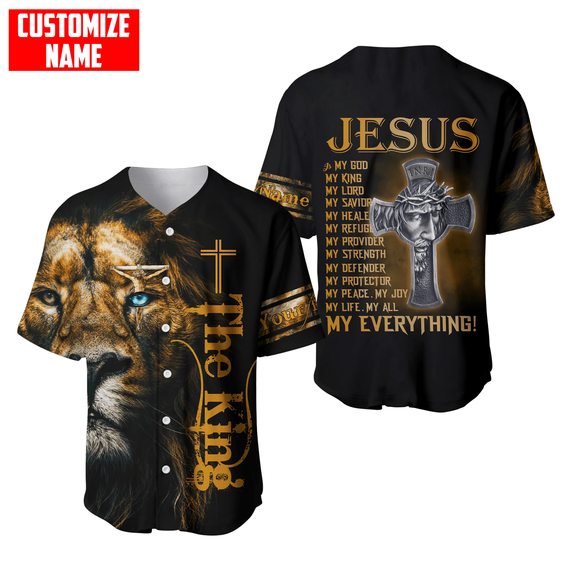 Personalized Jesus Baseball Jersey - Cross, Lion Baseball Jersey - Gift For Christians - My God My King Custom Printed 3D Baseball Jersey Shirt For Men and Women.