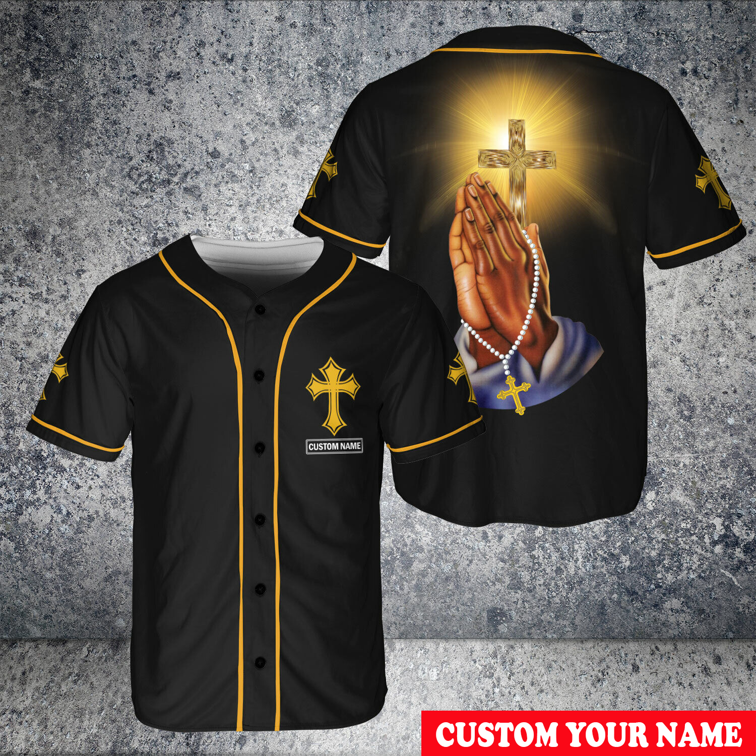 Personalized Jesus Baseball Jersey - Cross, Pray Baseball Jersey - Gift For Christians - Christ Who Strengthens Me Custom Baseball Jersey For Men Women