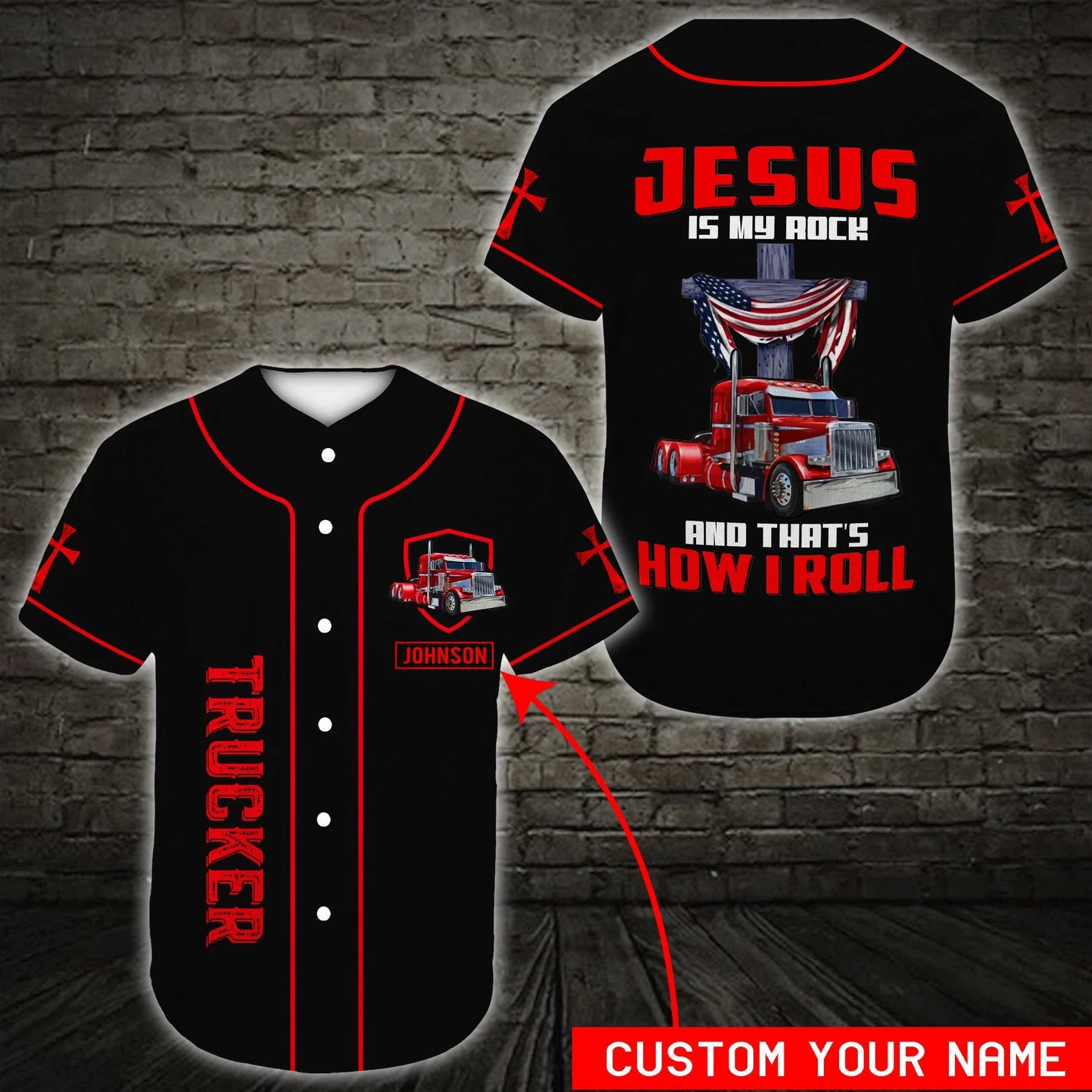 Personalized Jesus Baseball Jersey - Cross, Trucker Baseball Jersey - Gift For Christians - Jesus Is My Rock Custom Baseball Jersey Shirt For Men Women
