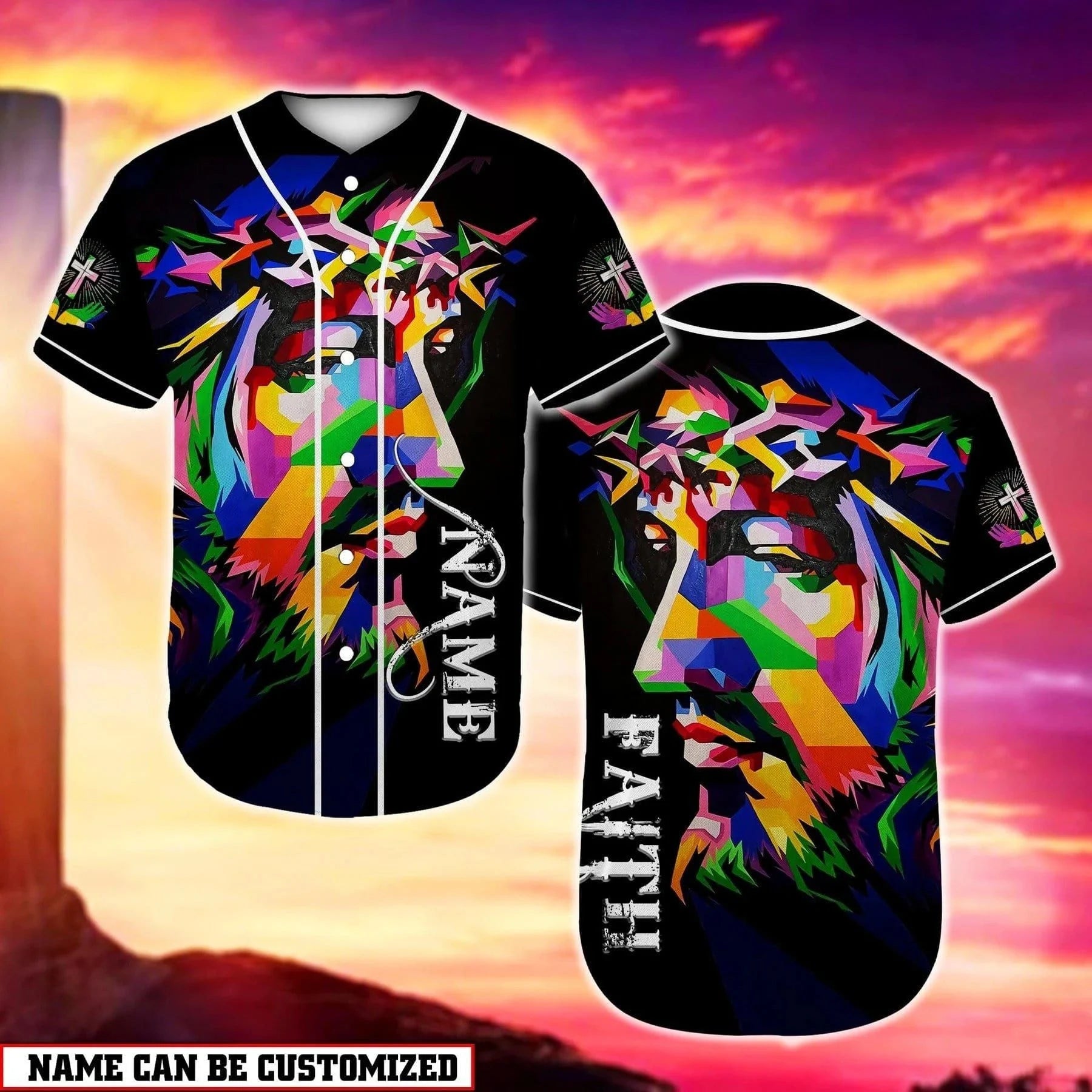 Personalized Jesus Baseball Jersey - Jesus Faith Colorful Baseball Jersey - Gift For Christians - Jesus Because Of Him Heaven Knows My Name Custom Shirt Printed 3D Baseball Jersey For Men and Women.