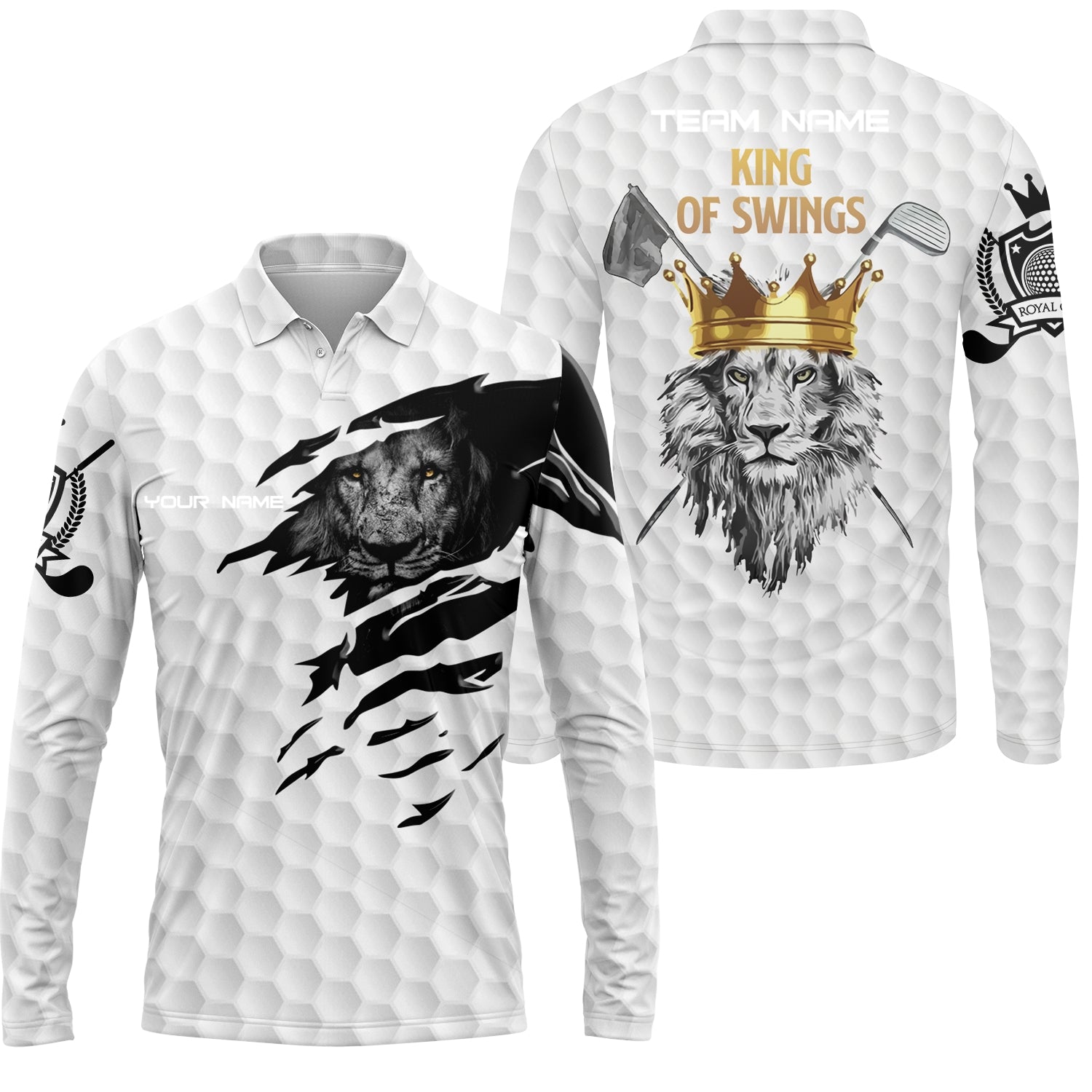 Personalized King Of Swings Lion Golf Long Sleeve Polo Shirt, Golf Custom Shirt For Golf Players, Gift For Golfers