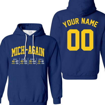 Personalized Michigan Football Mich-Again 4 Champions Hoodie With Scores, Perfect Outfit For Football Fans
