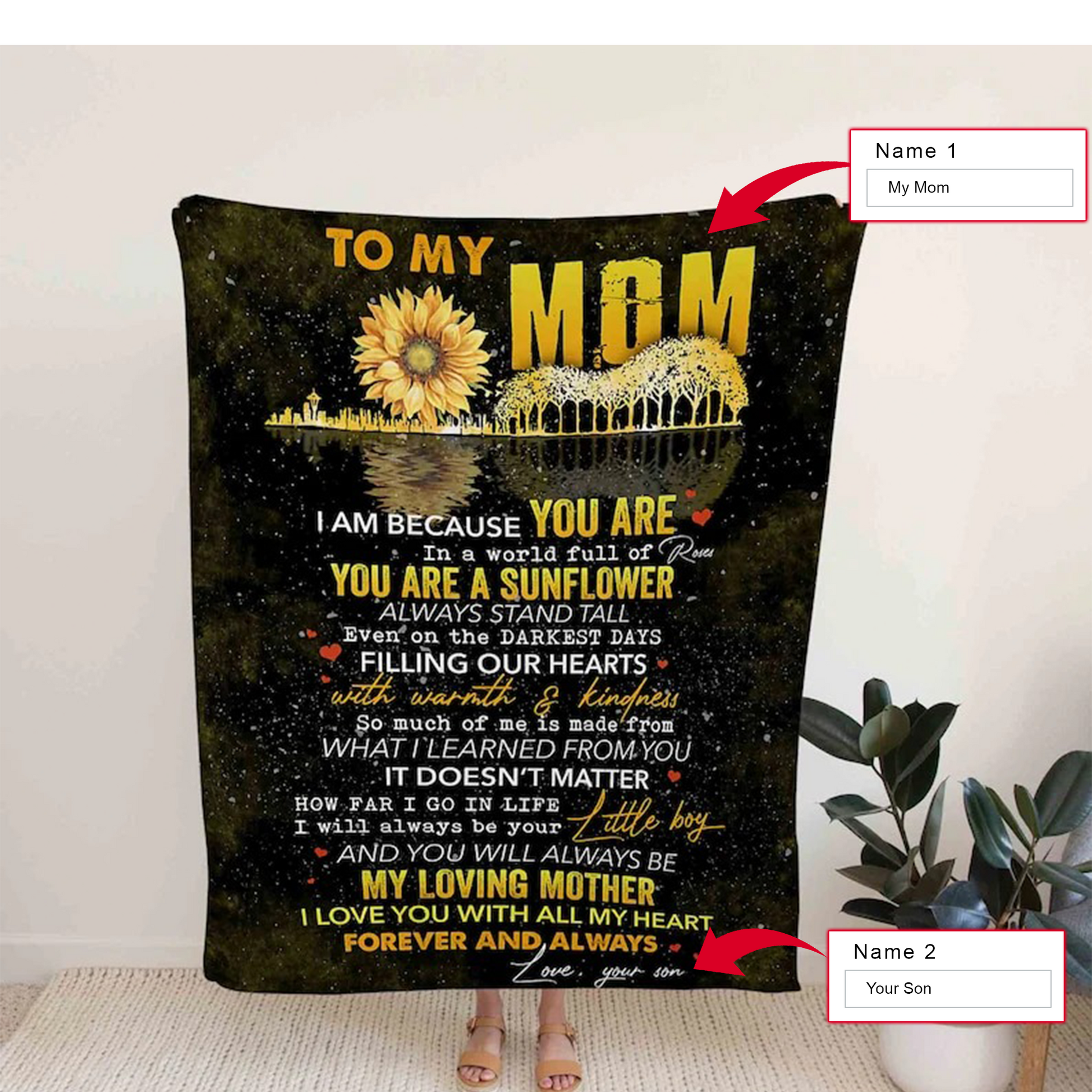 Personalized Mom Throw Blanket, To My Mom Sunflower Blanket, Mother's Day Gift, Blanket For Mom Gifts, Bed Sofa Home Decor