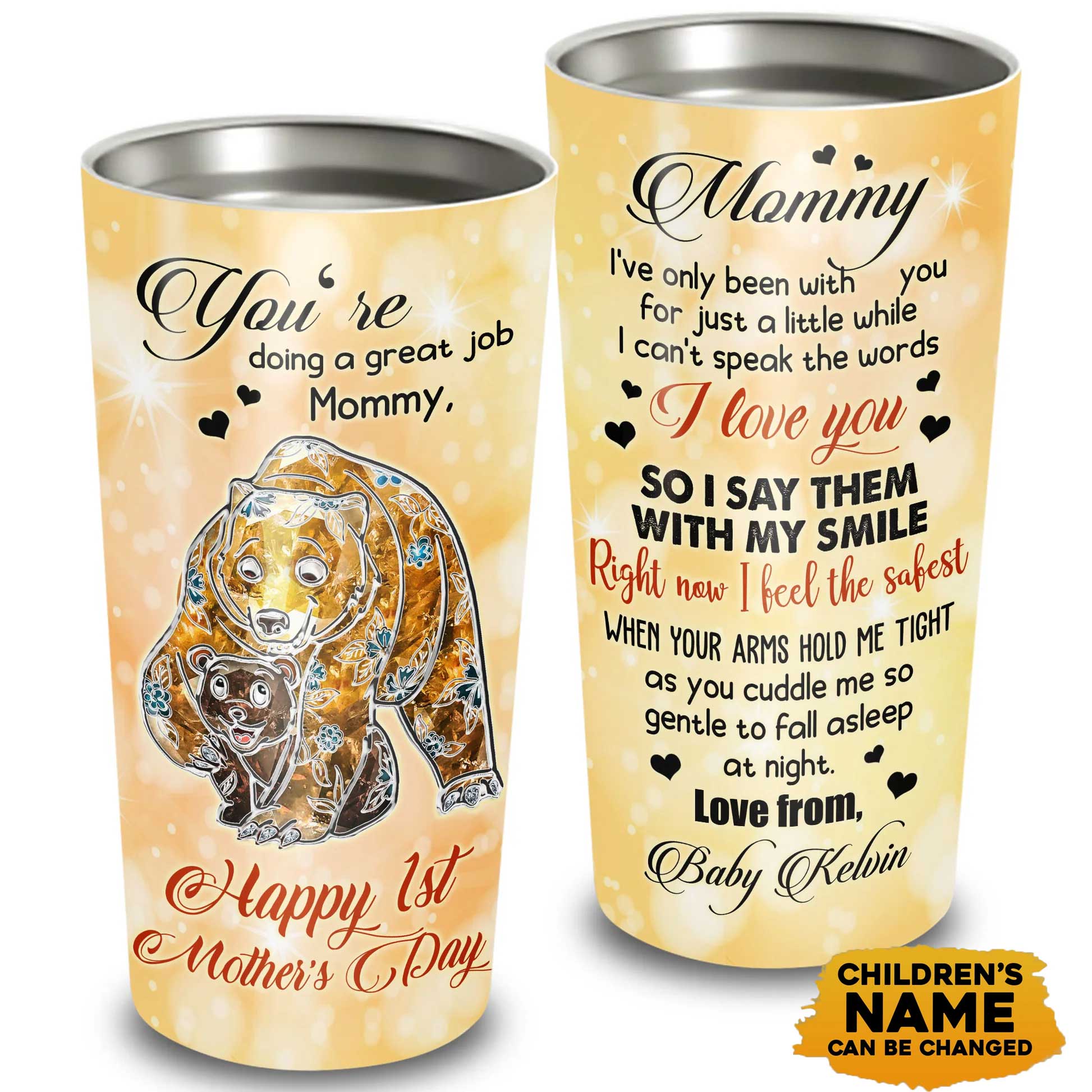 Personalized Mother's Day Gift Tumbler - Custom Gift For Mother's Day - Happy 1st Mother's Day You're Doing A Great Job Mommy Bear Tumbler