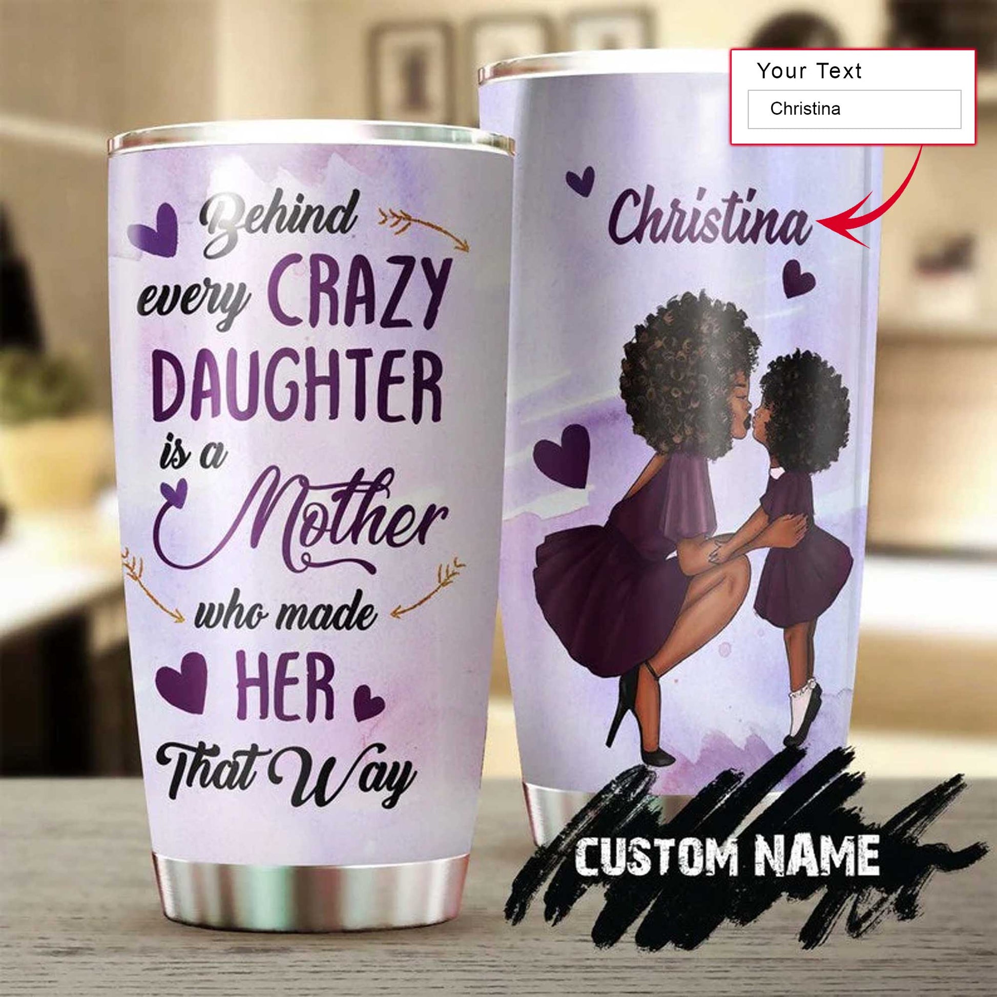 Personalized Mother's Day Gift Tumbler - Custom Gift For Mother's Day, Presents for Mom - Behind A Crazy Daughter Is A Mom, Black Mom Tumbler