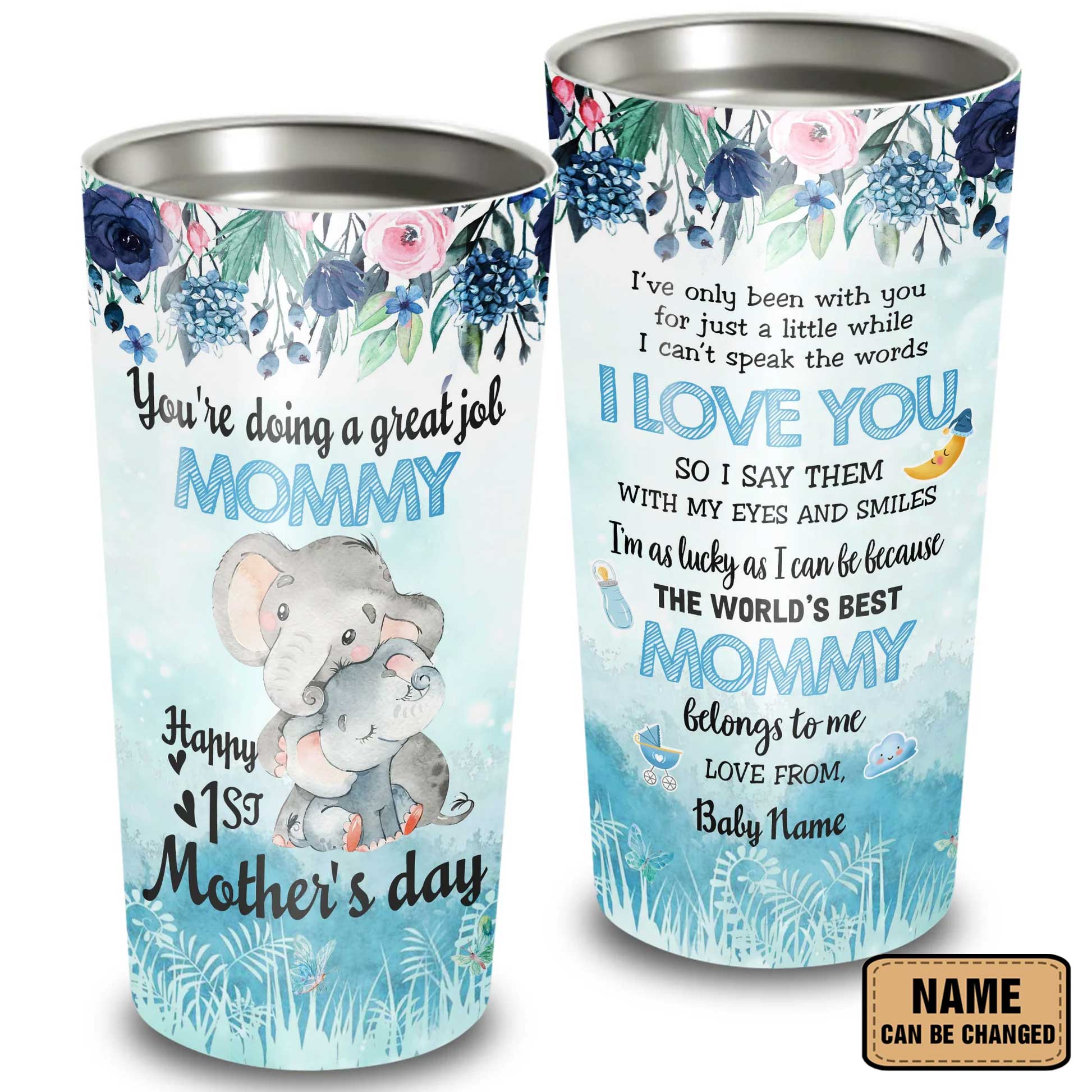 Personalized Mother's Day Gift Tumbler - Custom Gift For Mother's Day, Presents for Mom - Happy 1st Mother's Day You Are Doing A Great Job Elephant Tumbler