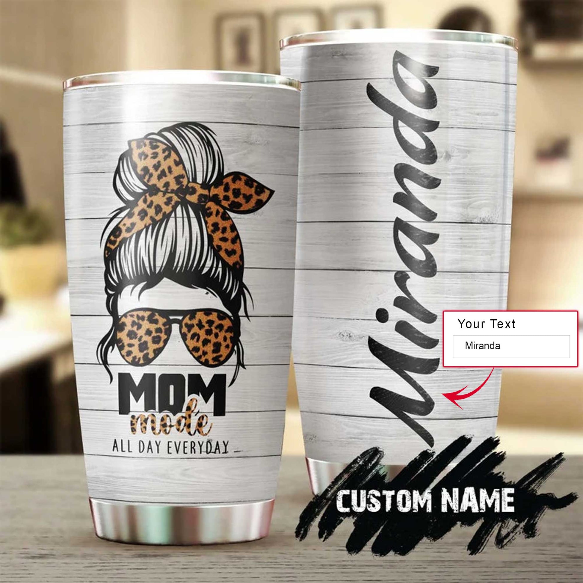 Personalized Mother's Day Gift Tumbler - Custom Gift For Mother's Day, Presents For Mom - Mom Mode All Day Every Day Messy Bun Tumbler