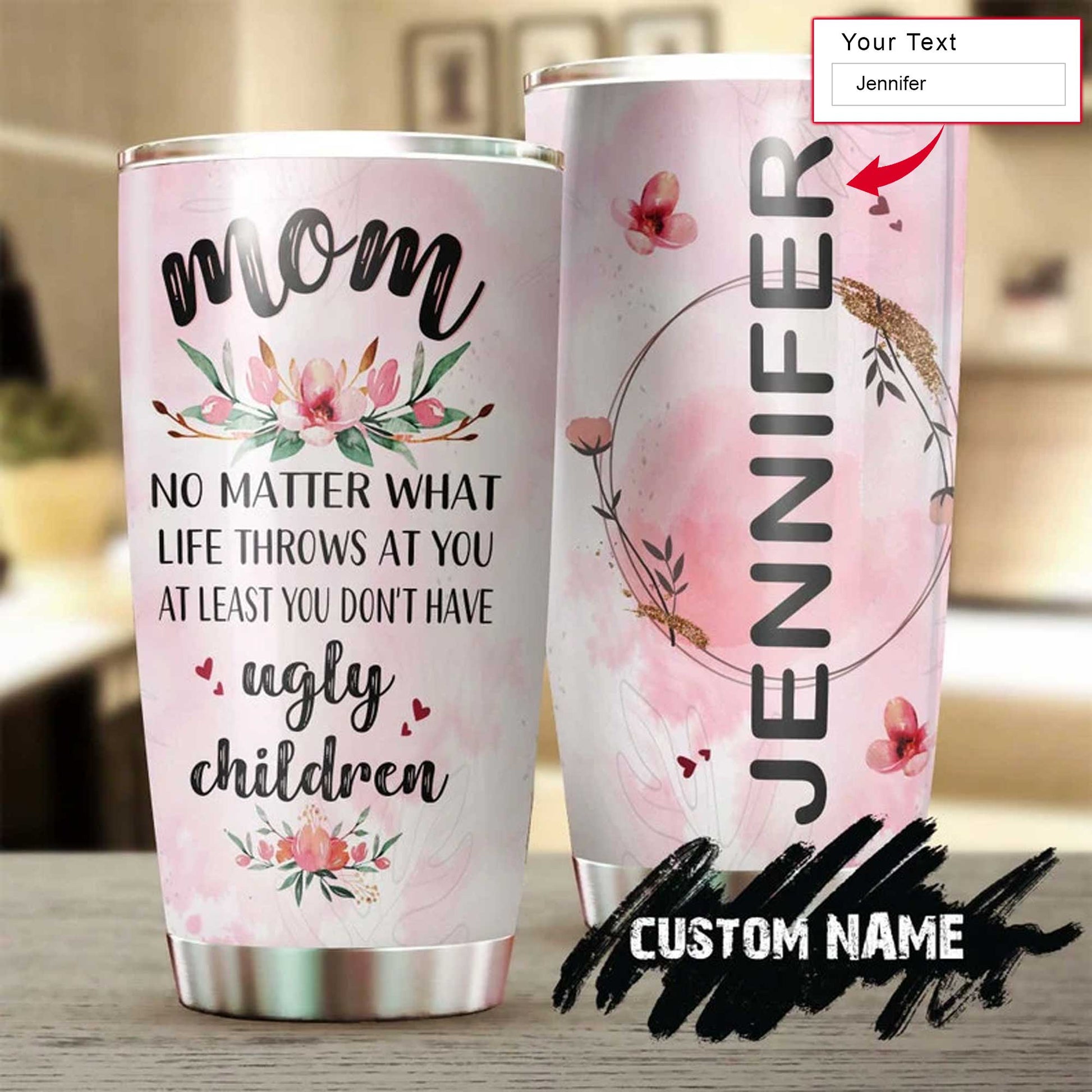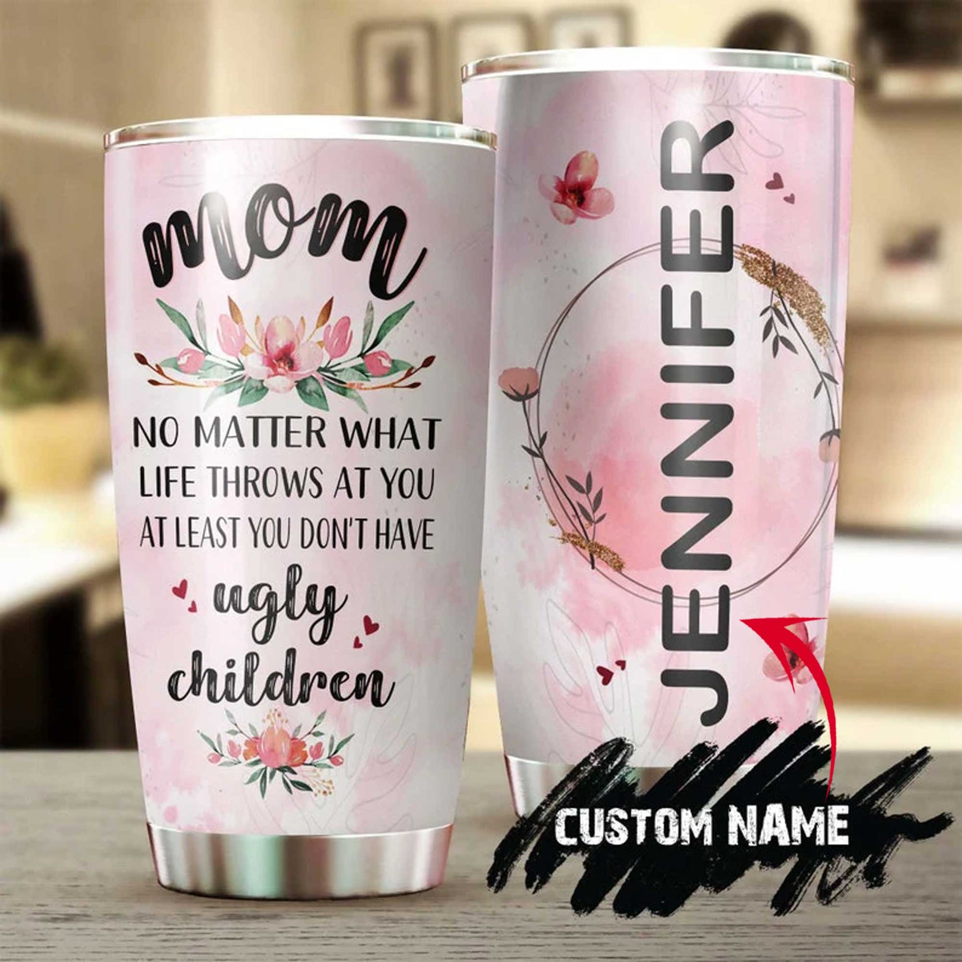 Personalized Mother's Day Gift Tumbler - Custom Gift For Mother's Day, Presents For Mom - No Matter What Life Throws At You Funny Floral Tumbler