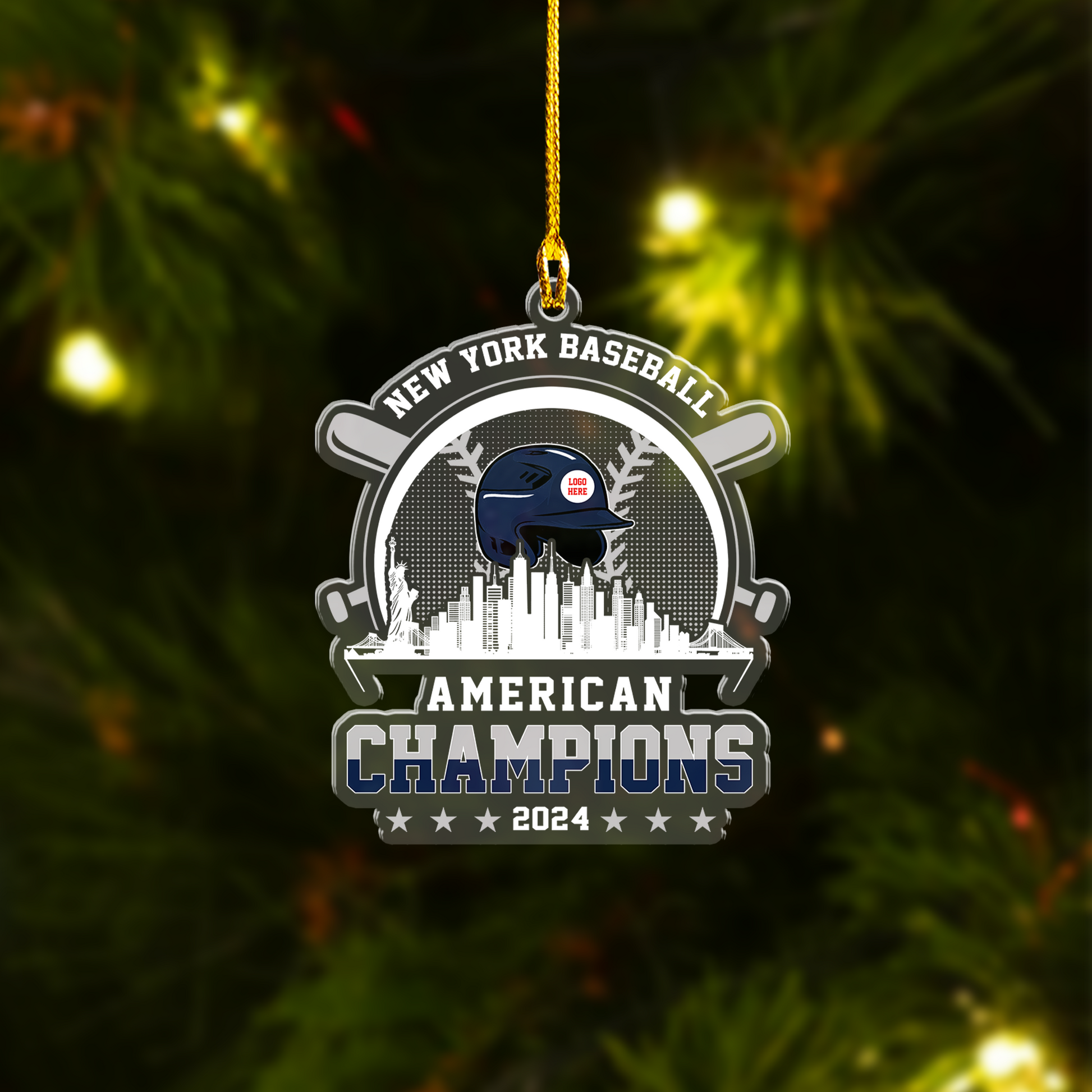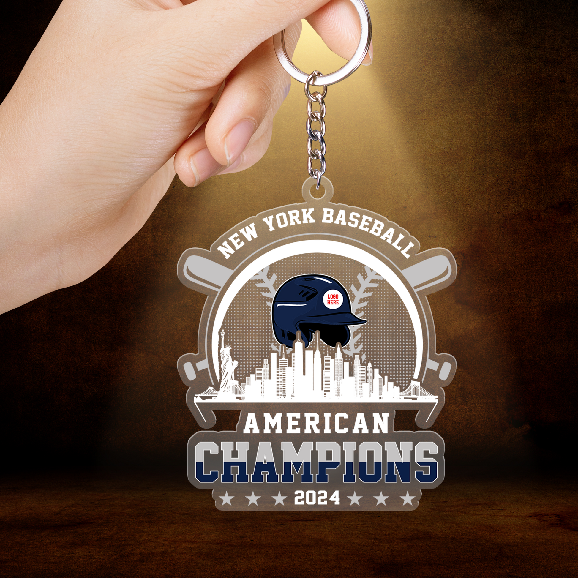 Personalized New York Y Baseball Skyline 2024 American Champions Acrylic Keychain, New York Y Champs Keychain Gifts