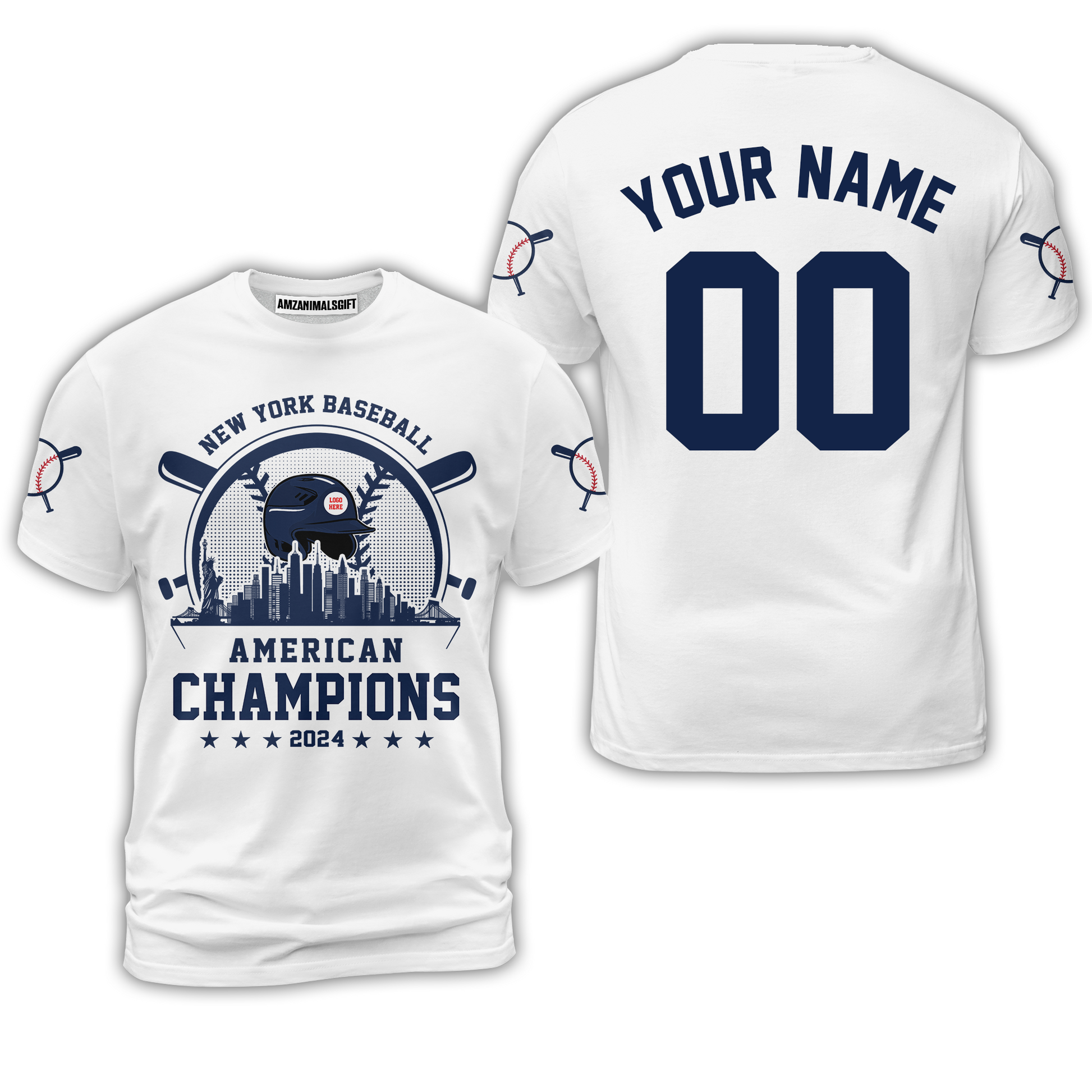 Personalized New York Y Baseball Skyline 2024 American Champions T-Shirt, New York Y Champs Shirt Gifts