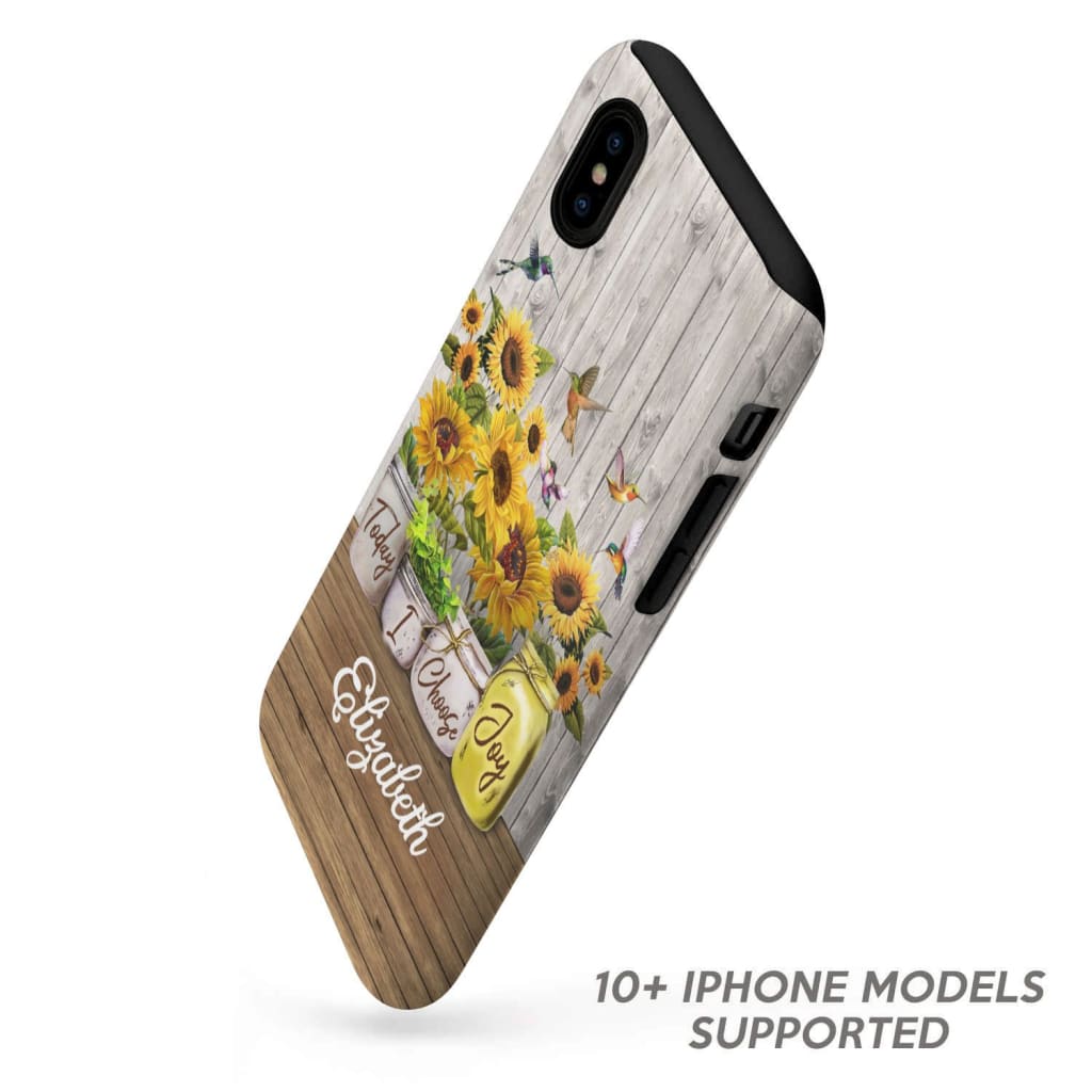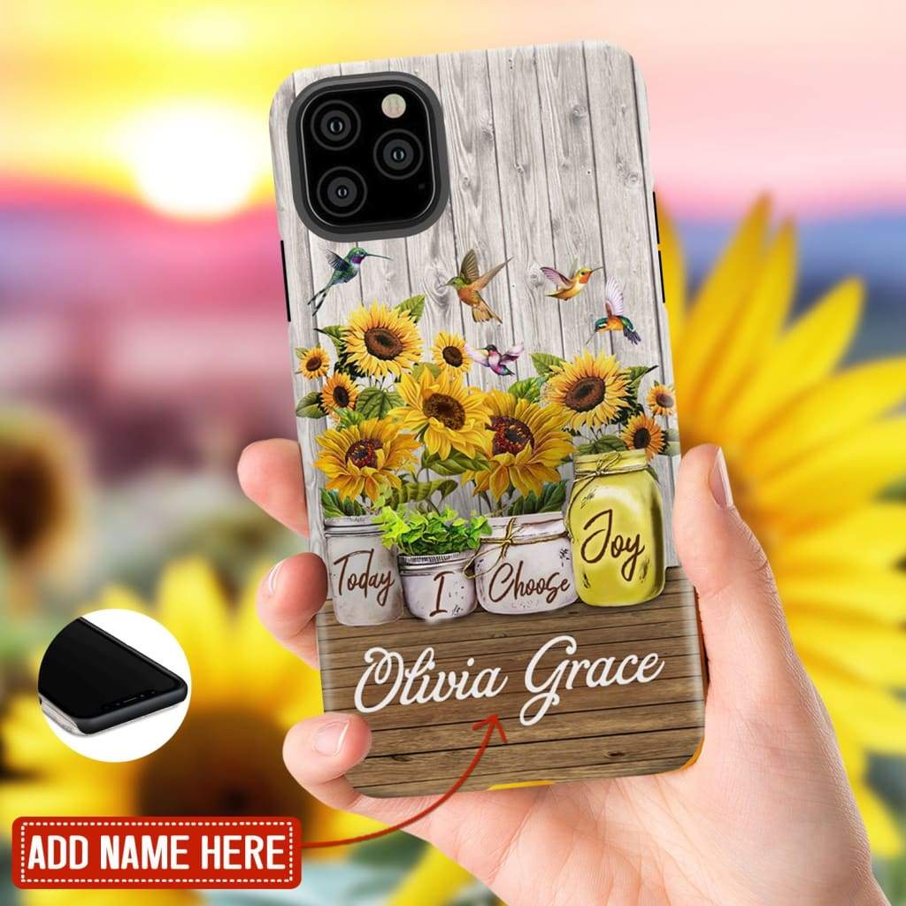 Personalized Phone Cases, Sunflower And Humming Bird Phone Cases, Today I Choose Joy Custom Name Phone Case, Gift For Mother's Day, Friend, Family