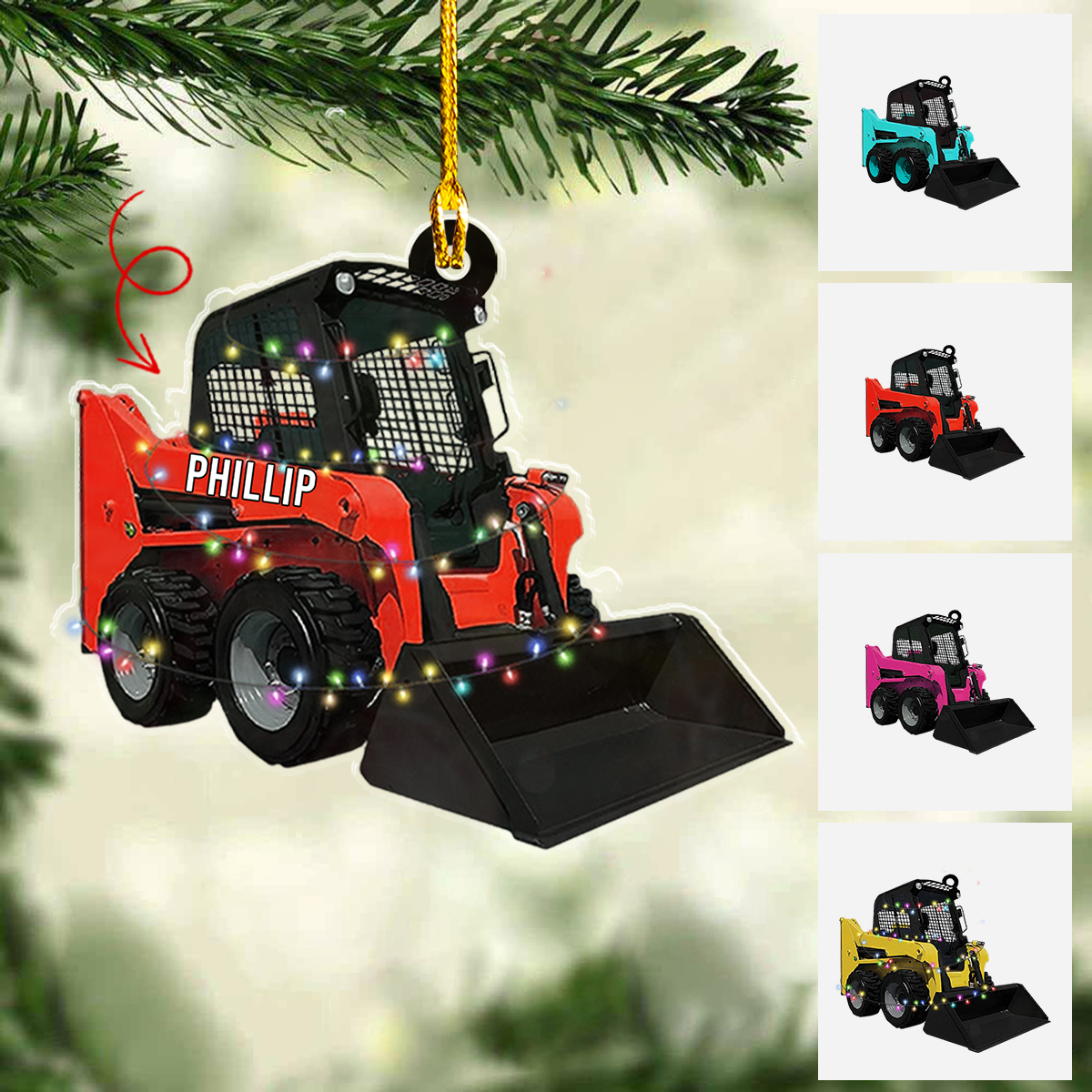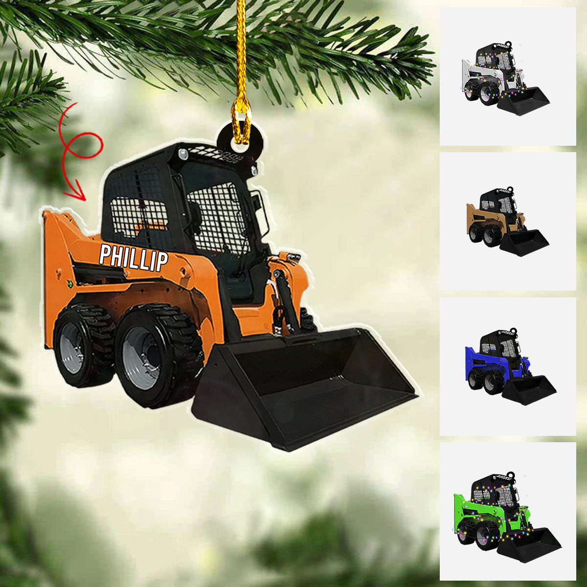 Personalized Skid Steer Loader Flat Acrylic Ornament, Truck Car Christmas Ornament Gift For Grandson, Granddaughter