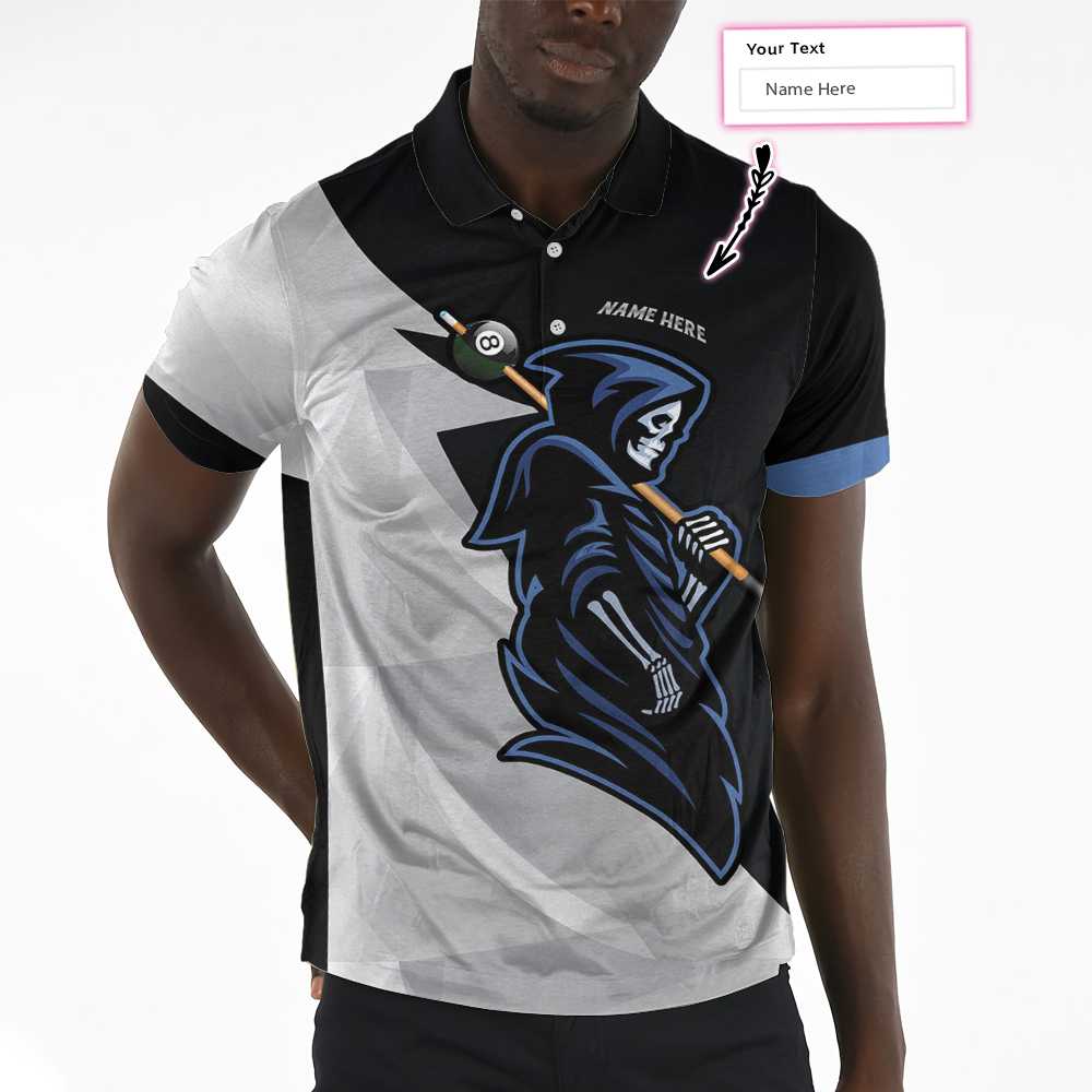 Personalized Skull Billiards Polo Shirt For Men, 8 Ball Skull Custom Men Polo Shirt, Custom Billiards Gift For Billiards Lovers