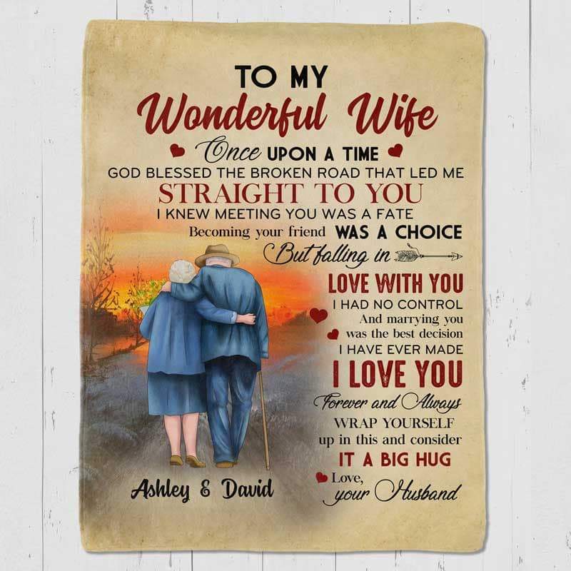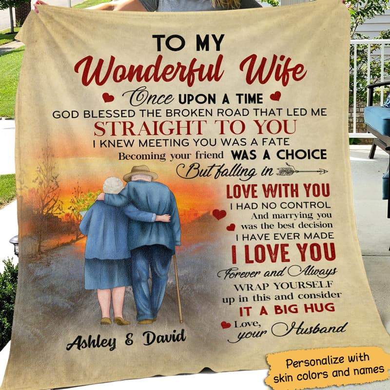 Personalized Gift For Wife Wife - To My Wonderful Wife, Old Couple Blanket - Custom Romantic Gift For Wife, Lover, Newlyweds, Birthday, Anniversary Wedding, Christmas, Valentine's Day Blanket