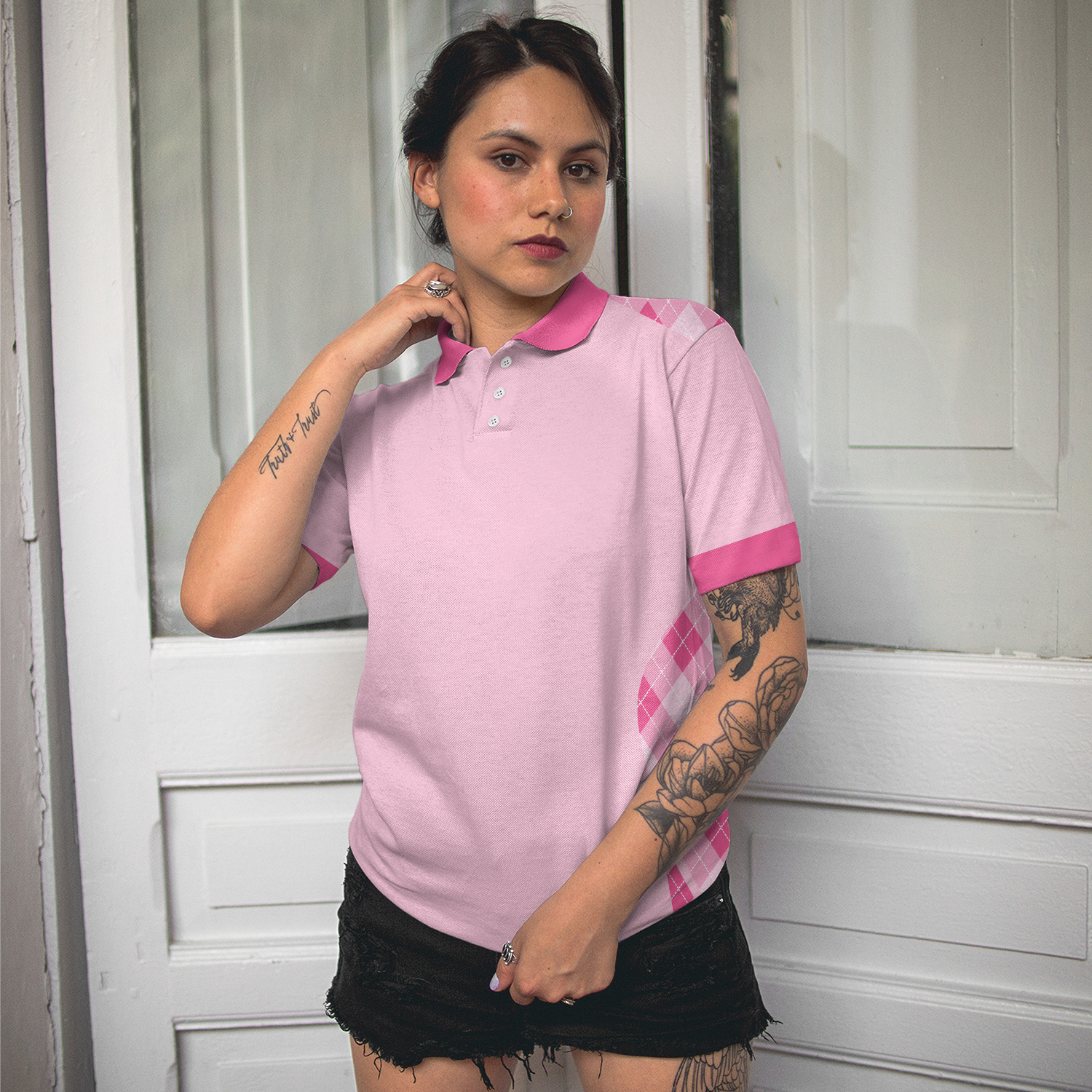 Pink Argyle Pattern Women Polo Shirt, Grip It Rip It Sip It Golf Short Sleeve Polo Shirt, Best Pink Golf Polo Shirt For Women