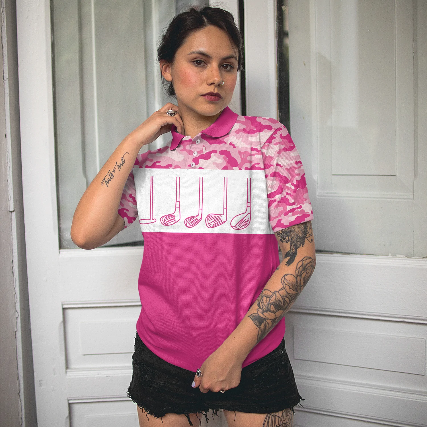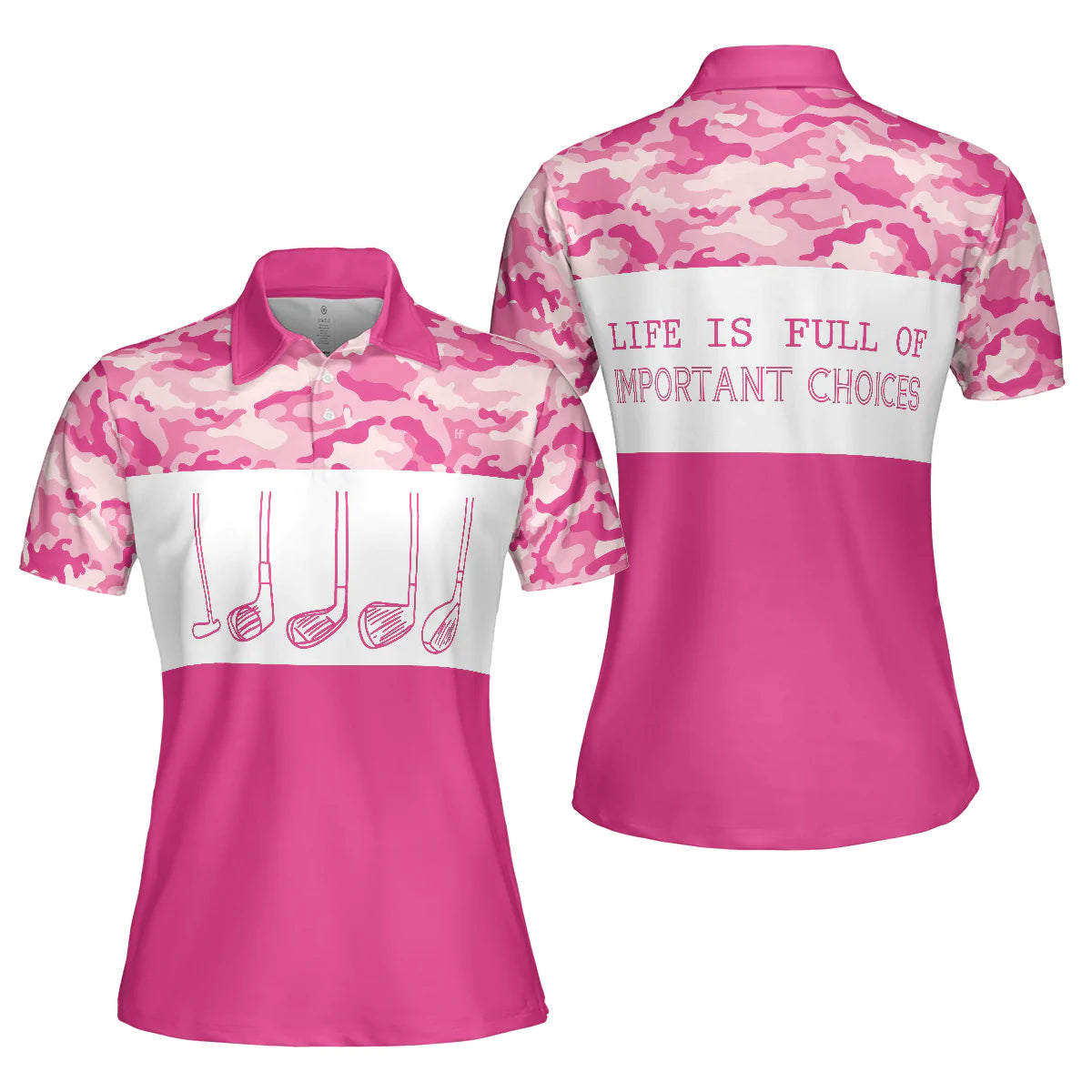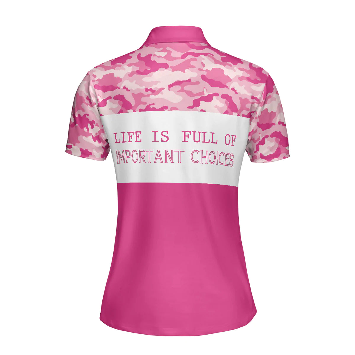Pink Camouflage Golf Clubs Women Polo Shirt, Life Is Full Of Important Choices Short Sleeve Shirt For Female, Best Golf Shirts For Hot Weather
