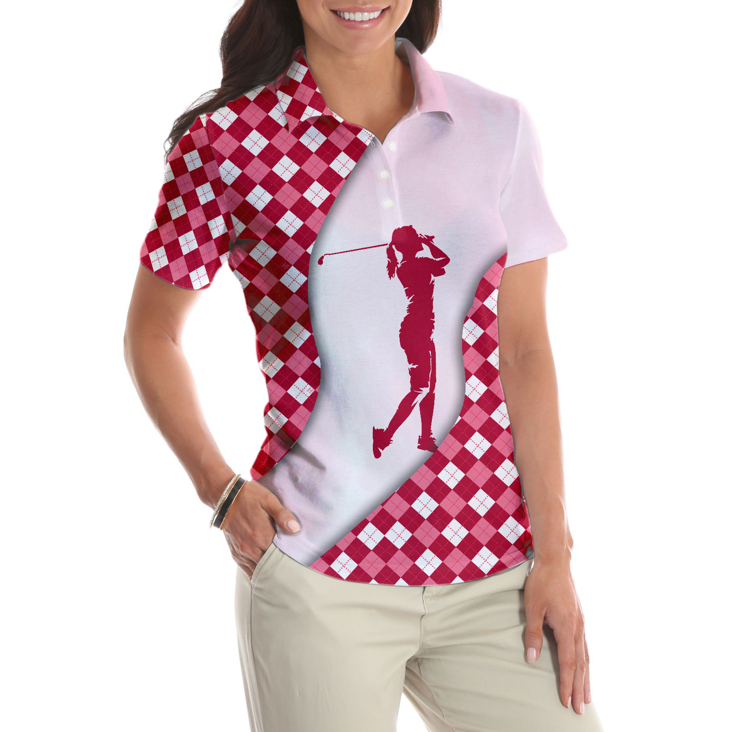 Pink Pattern Women Polo Shirt, Golf And Wine Kind Of Girl Short Sleeve Shirt For Golf Ladies