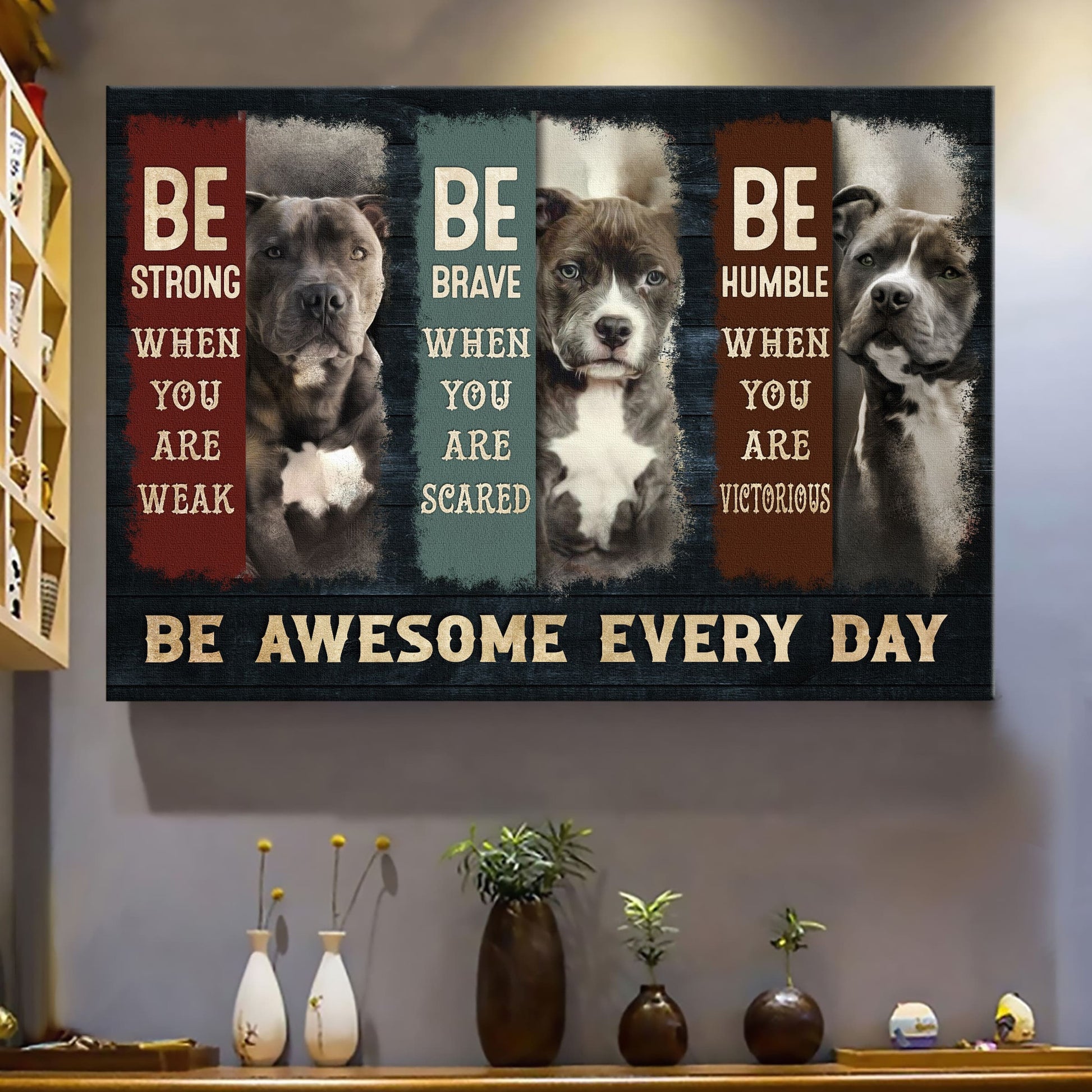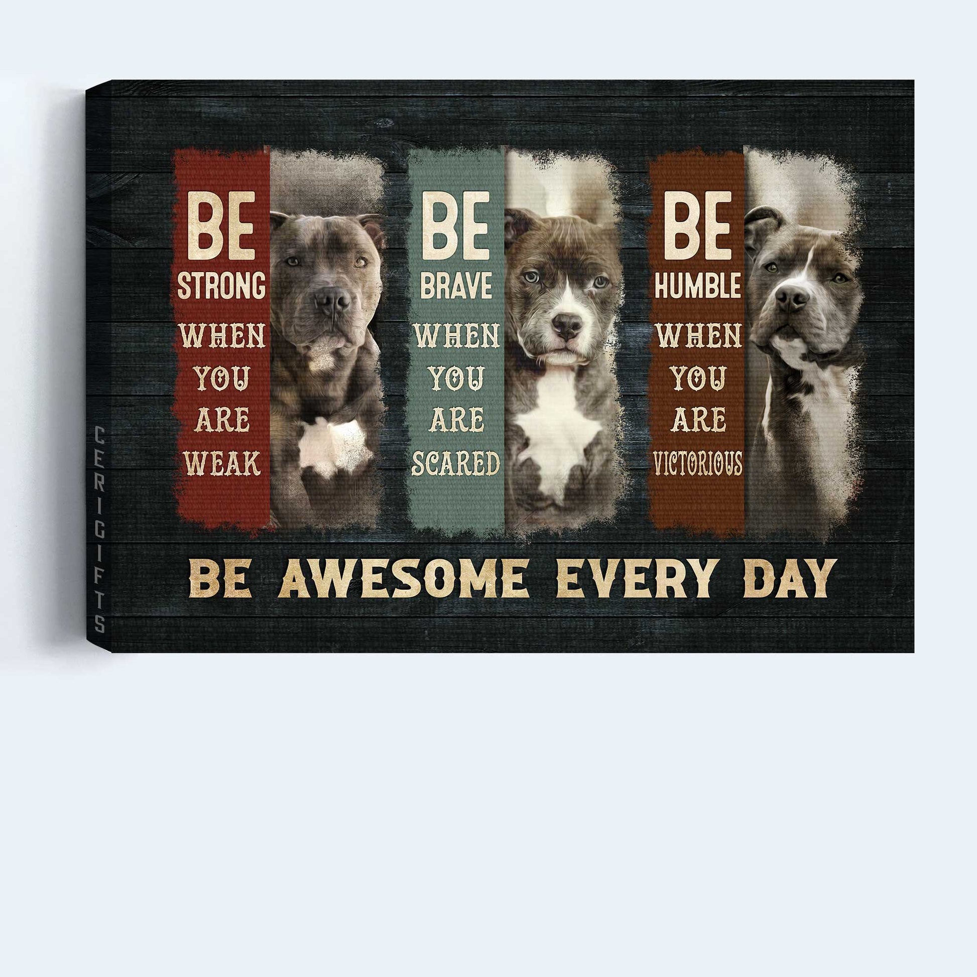Are you going to find wall art that will daily remind you to think positively throughout the day? Then, this Amazing Pit bull, Be awesome every day - Pit bull Landscape Canvas Prints, Wall Art is undeniably is there for you! With brave Pit bulls and inspiring quote, this wall art will motivate you to try hard and improve. Remember that positive thinking will lead to positive results. Besides, this Amazing Pit bull, Be awesome every day - Pit bull Landscape Canvas Prints, Wall Art is also a wonderful gift not only for your buddy, your darling but also for your family, especially for those who need motivation in life. Amazing Pit bull, Be awesome every day - Pit bull Landscape Canvas Prints, Wall Art will match any room in your house from kitchen, bedroom, bathroom, living room to outdoor space.