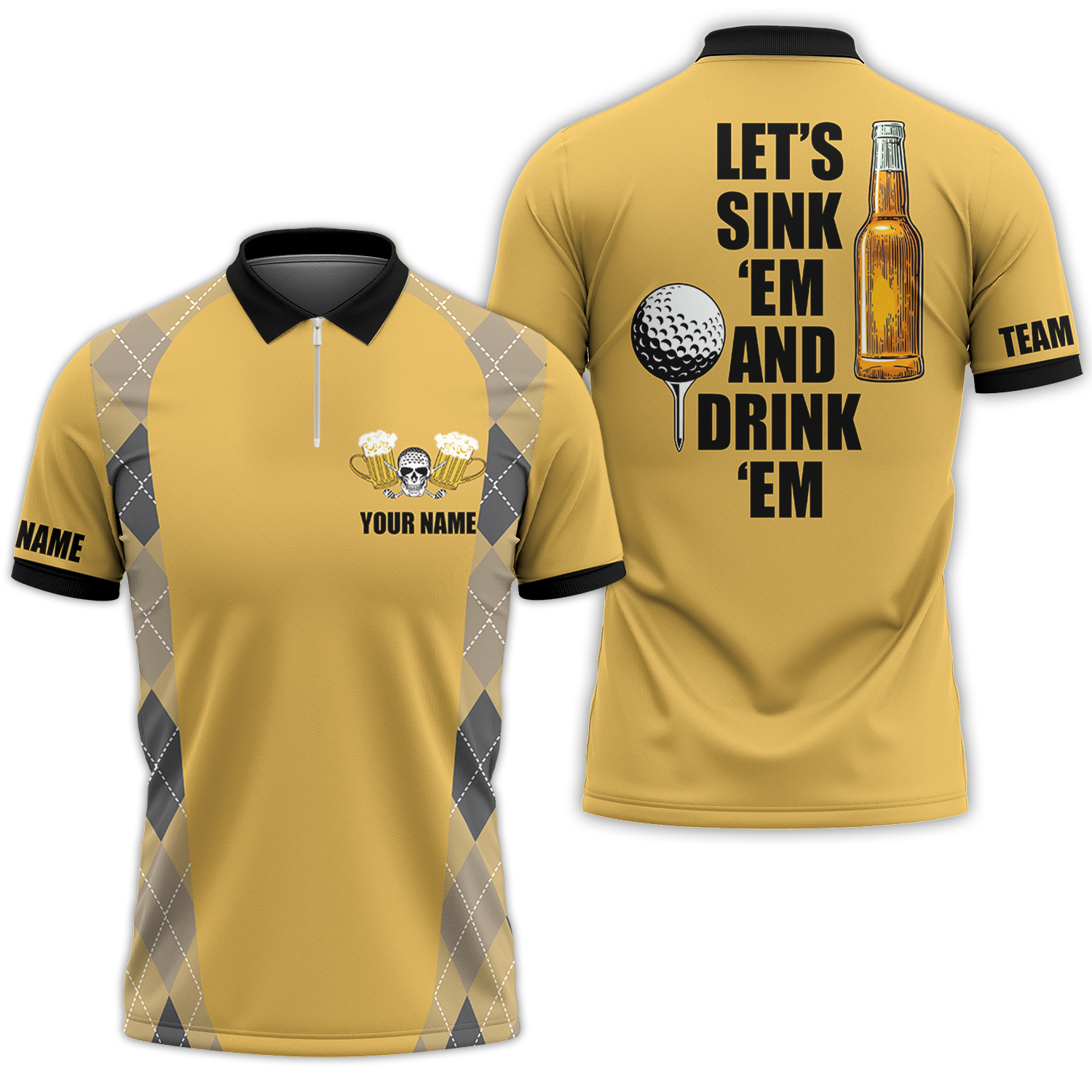 Plaid Pattern Golf Beer Men Polo Shirt, Let's Sink 'Em And Drink 'Em Golf Polo Shirt, Golf Gift Idea For Beer Lovers