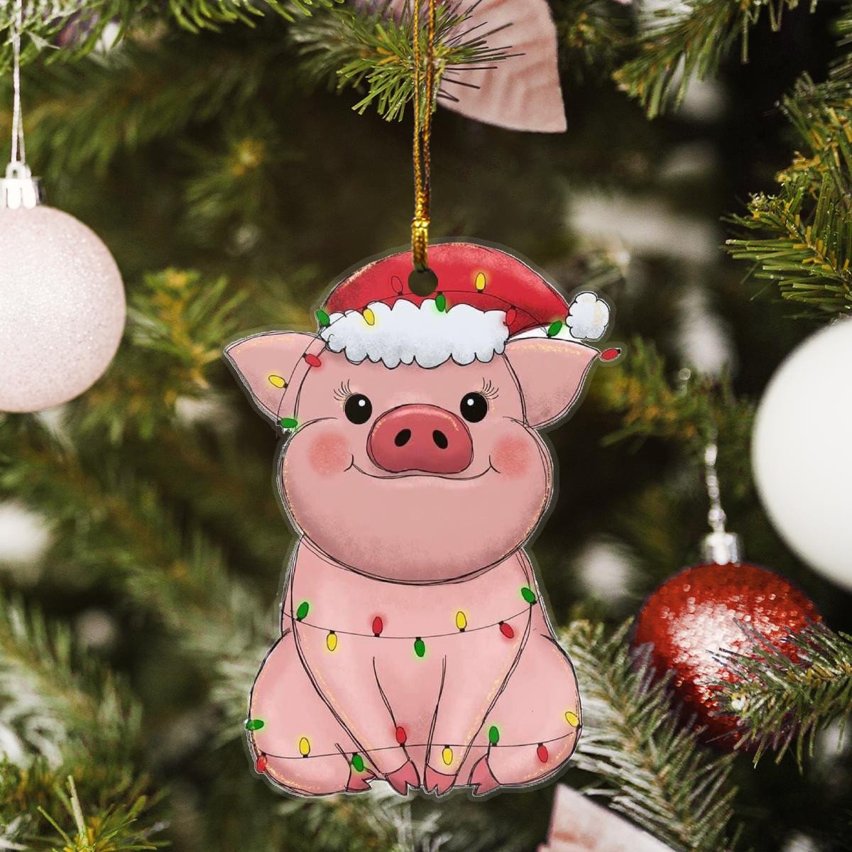 Pretty Pig Santa Claus Red Hat Custom Plastic Acrylic Ornaments Xmas Gifts for Family Friends - Best Ornament Gifts For Religious Christian, Gifts For Pig Lover, Gifts For Animal Lover.