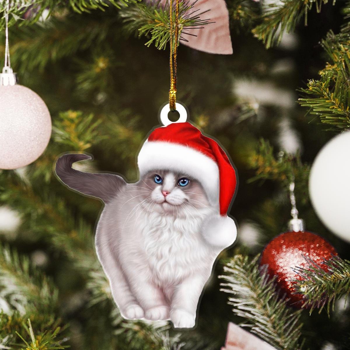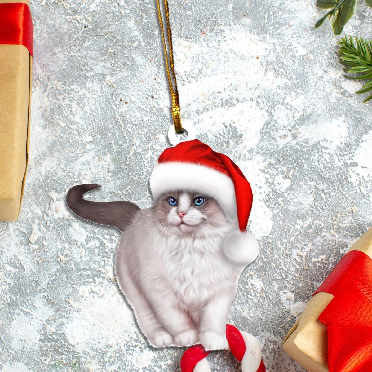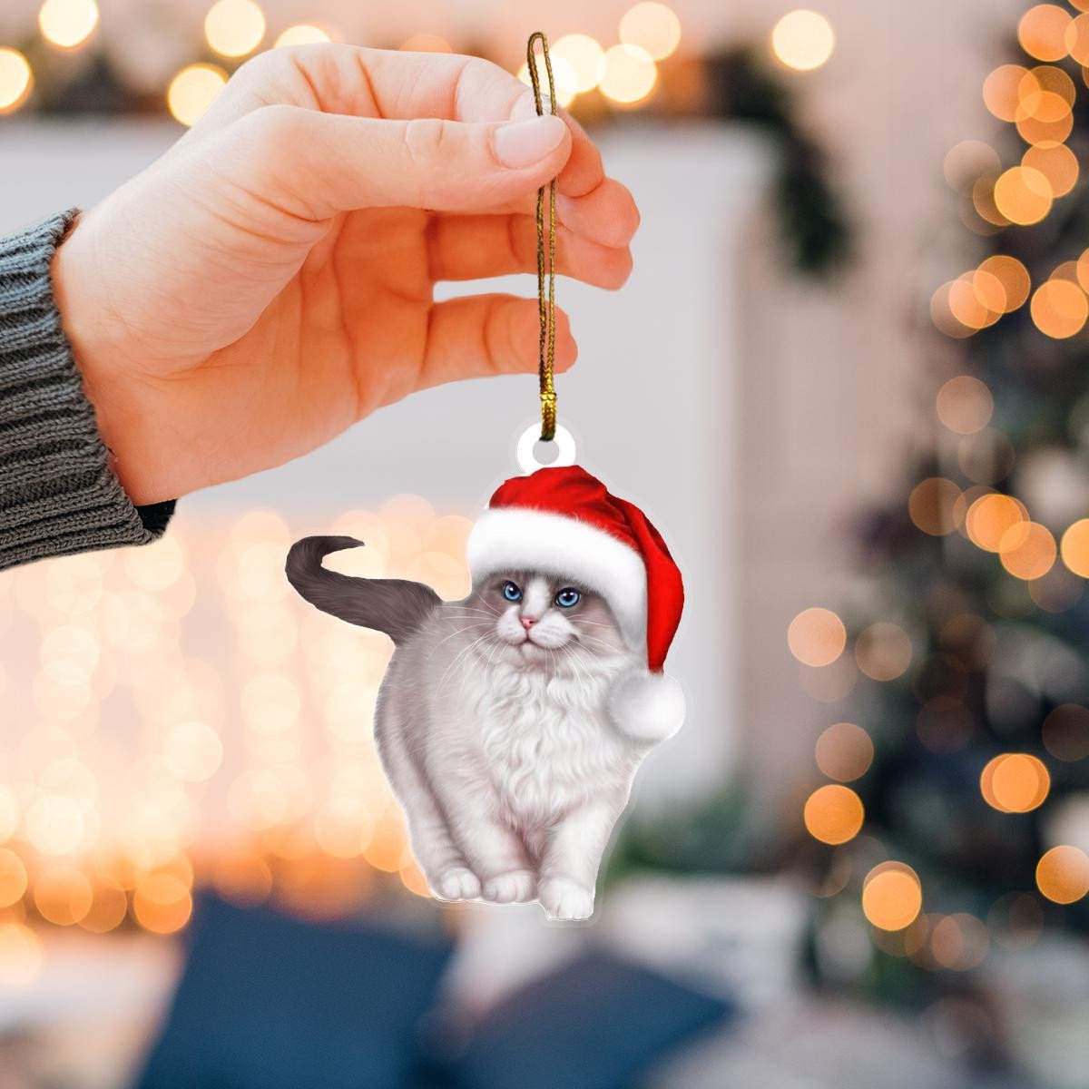 Ragdoll Cat Santa Claus Red Hat Custom Plastic Acrylic Ornaments Xmas Gifts for Family Friends