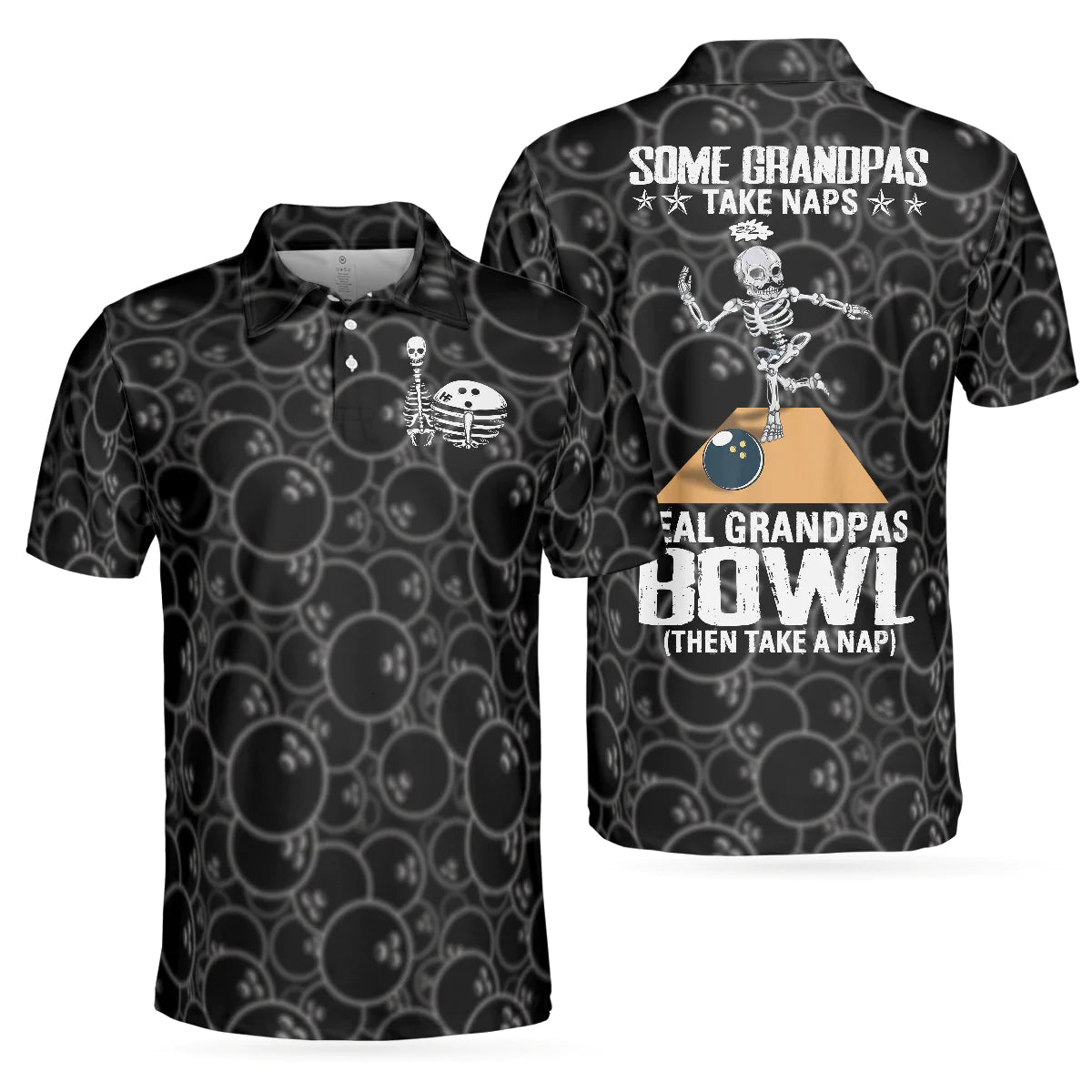 Real Grandpas Bowl Polo Shirt, Black Ball Pattern Bowling Polo Shirt, Funny Bowling Shirt With Sayings - Best Bowling Gift For Men