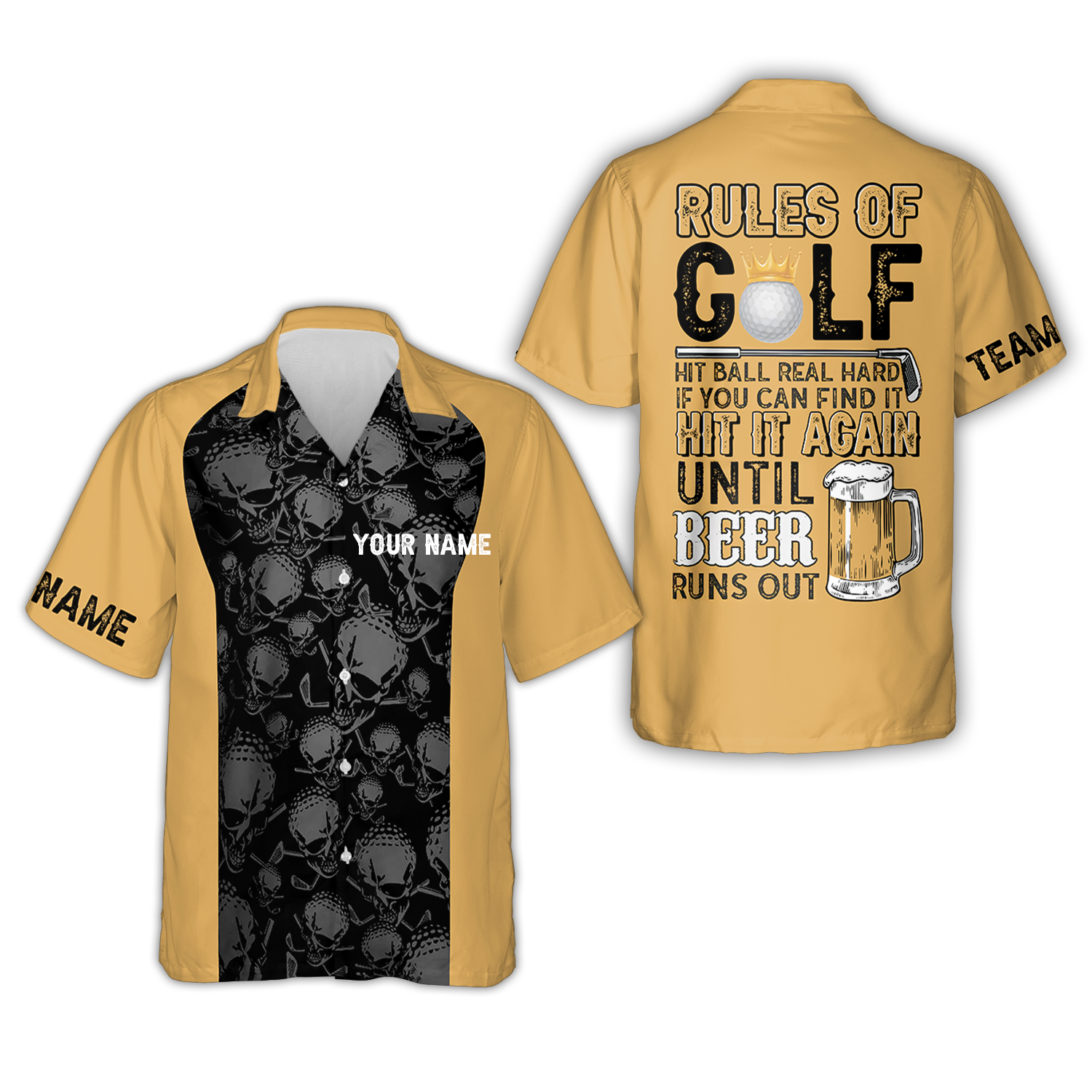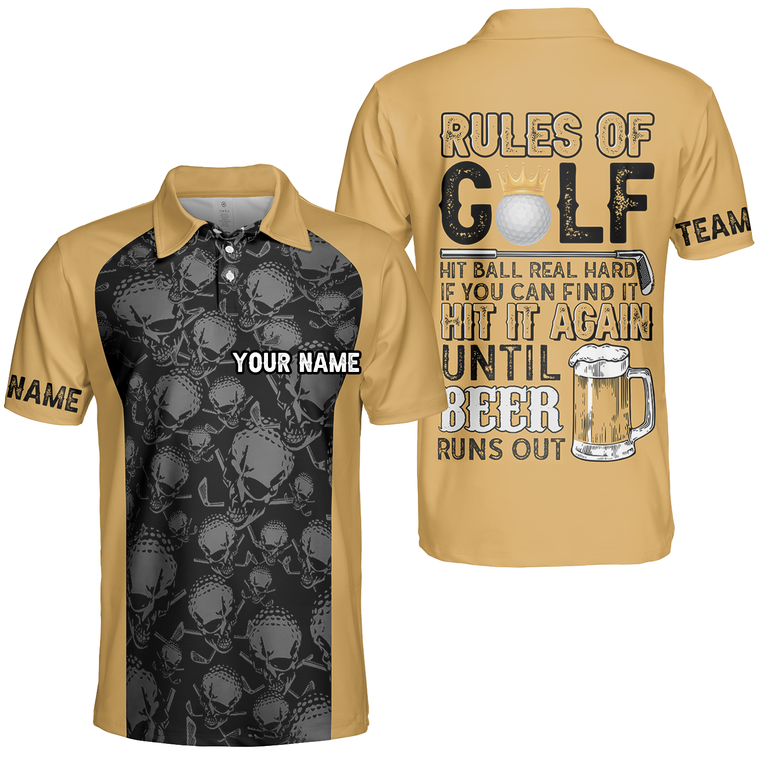 Rules Of Golf Men Polo Shirt, Black And Orange Golfing Shirt With Sayings, Cool Golf Gift For Beer Lovers