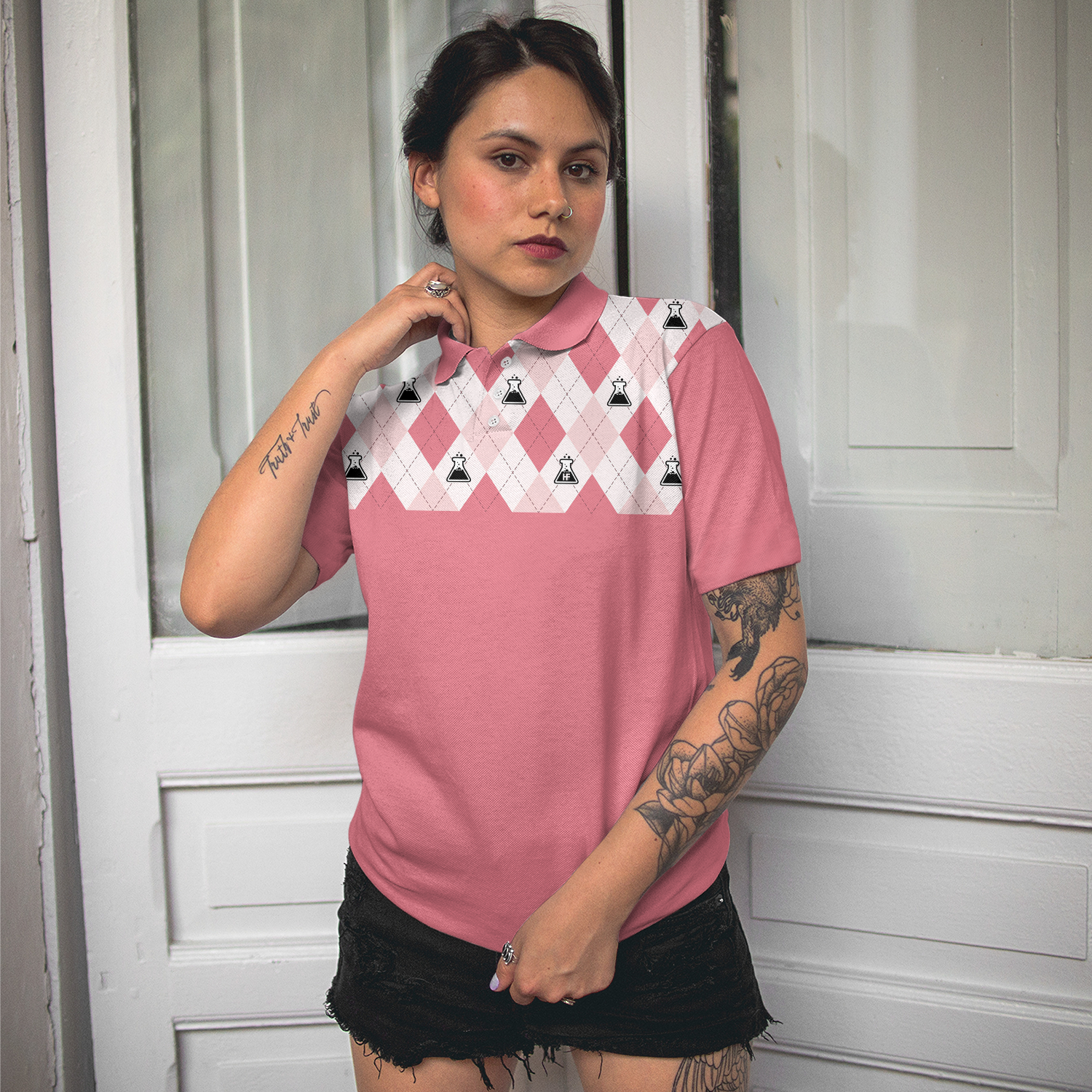 Science Pink Argyle Pattern Short Sleeve Women Polo Shirt, My Students Make Me Smile Women Polo Shirt, Golf Polo Shirt - Perfect Gift For Women
