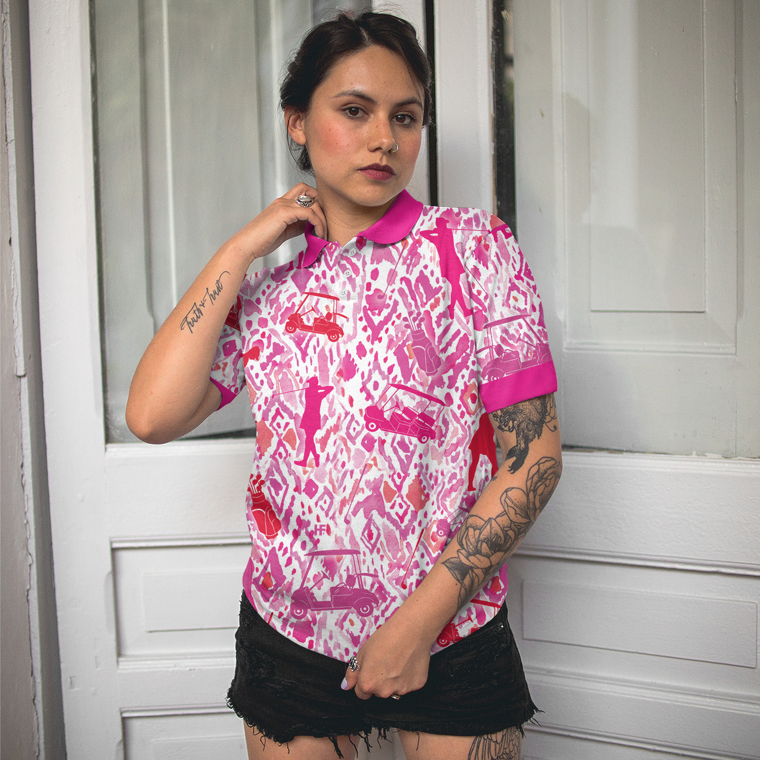 Seamless Pink Golfer Short Sleeve Women Polo Shirt, Unique Gift For Female Golfers - Perfect Gift For Women, Golfer