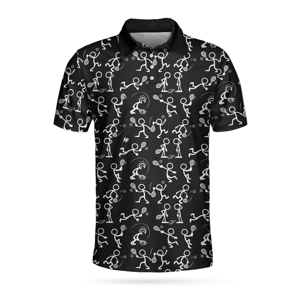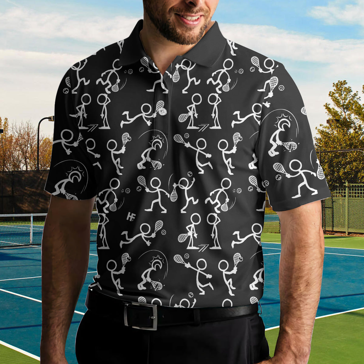 Stickfigures Playing Tennis Short Sleeve Polo Shirt, Doodling Tennis Polo Shirt, Best Tennis Shirt For Men - Perfect Gift For Men, Tennis Lovers