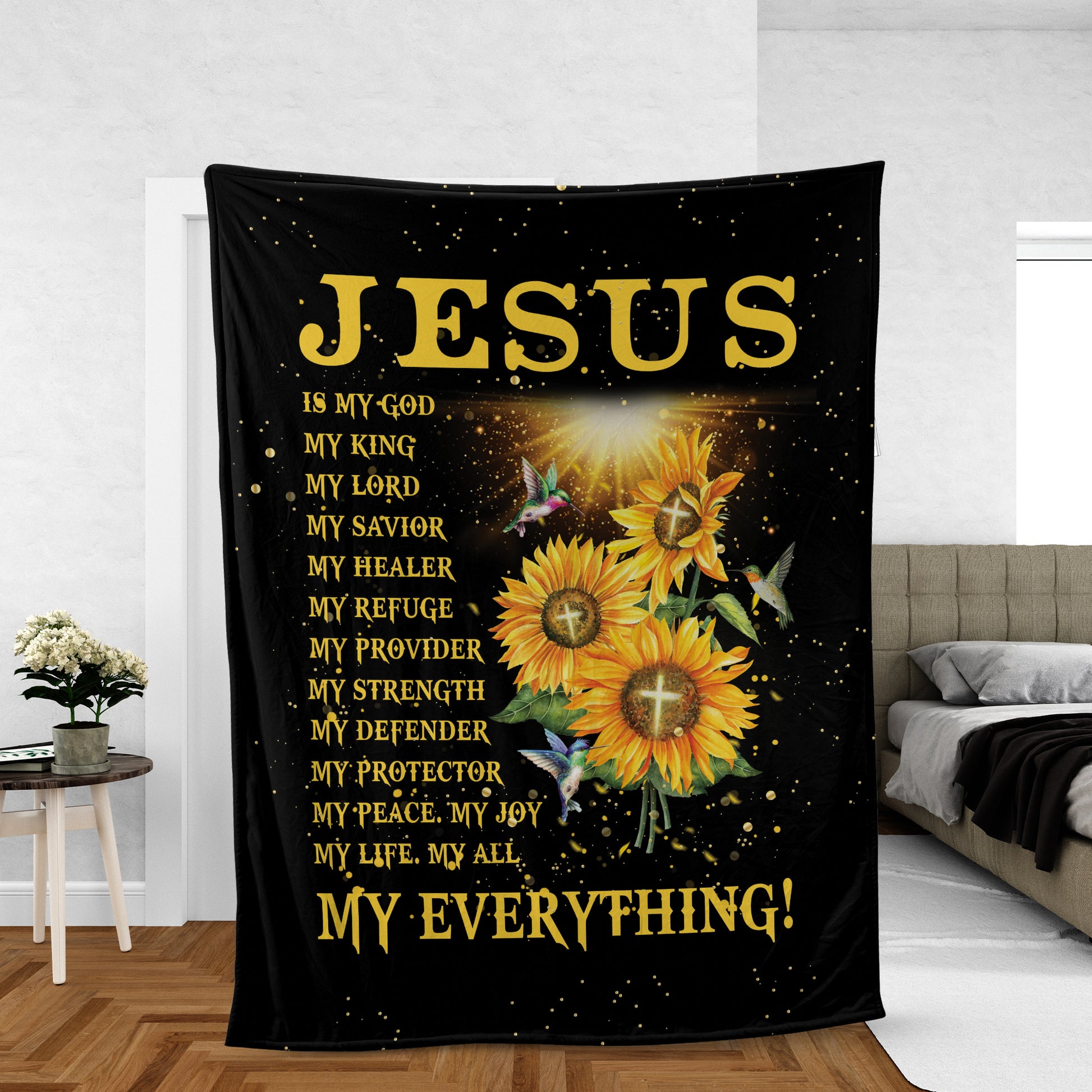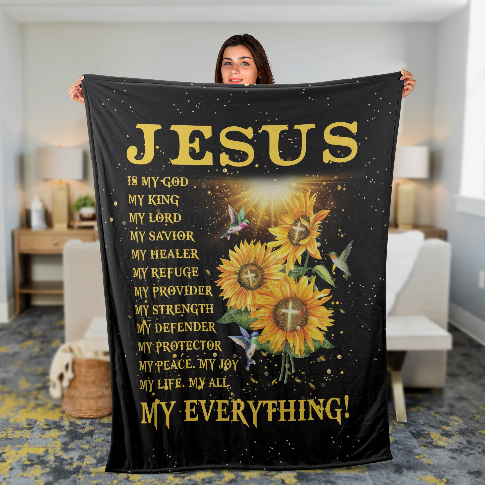 Sunflower And Hummingbird Throw Blanket, Christian Throw Blanket, Faith Blanket, Jesus Blanket, Inspirational Gift - Jesus Is My Everything
