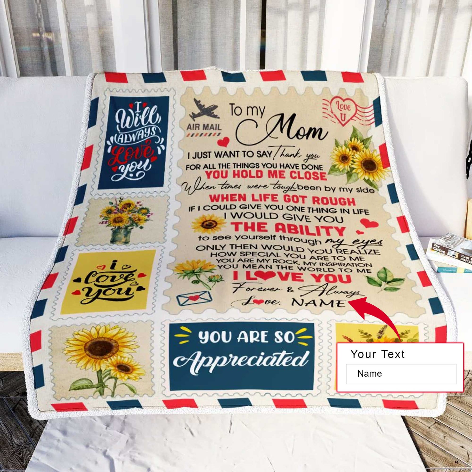 Sunflower Gift For Mom Personalized Blanket - Custom Name, Mail Letter, To My Mom, I Just Want To Say Thank You Blanket - Gift For Mother's Day