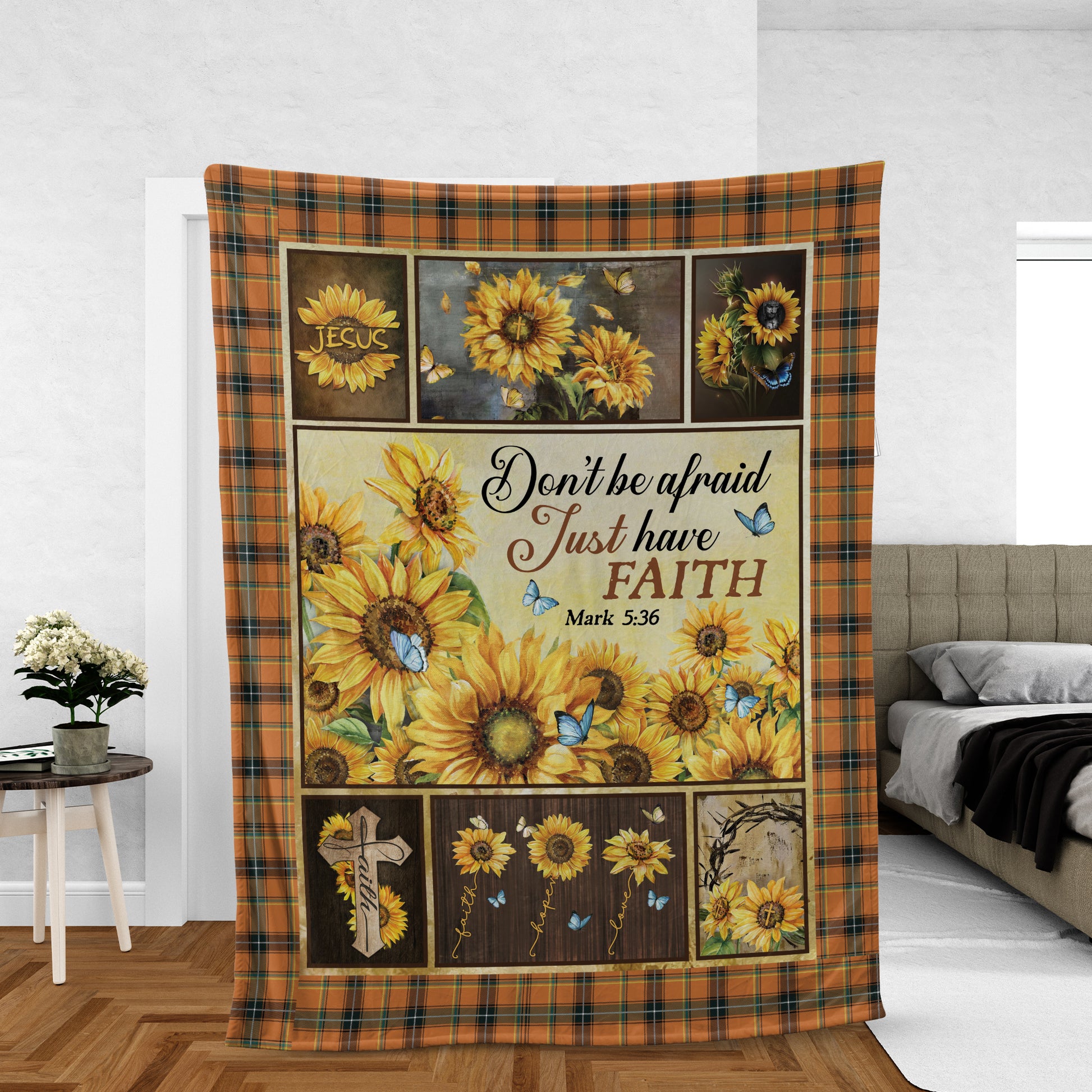 Sunflower Throw Blanket, Christian Blanket, God Blanket, Faith Blanket, Inspirational Gift - Blue Butterfly, Don't Be Afraid Just Have Faith