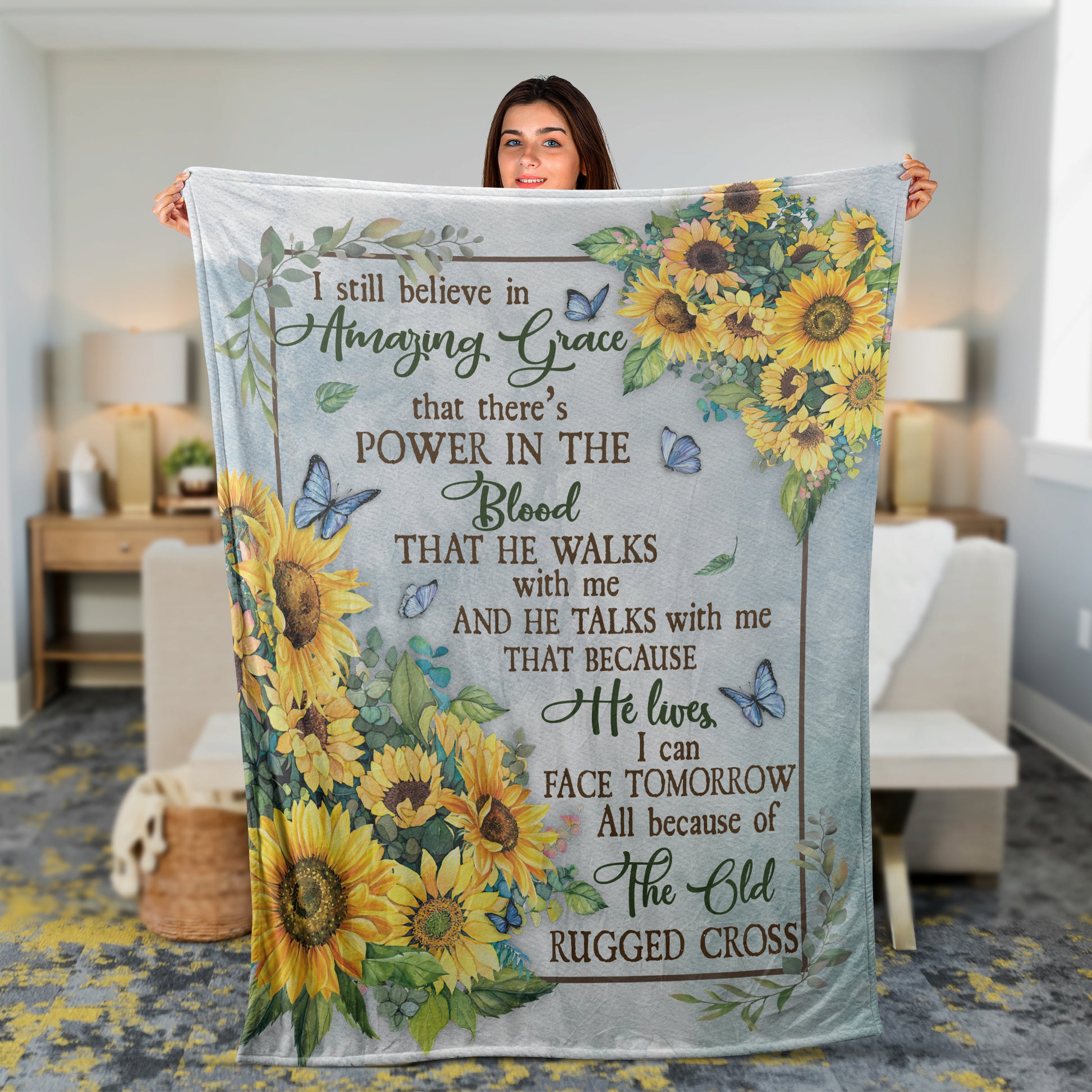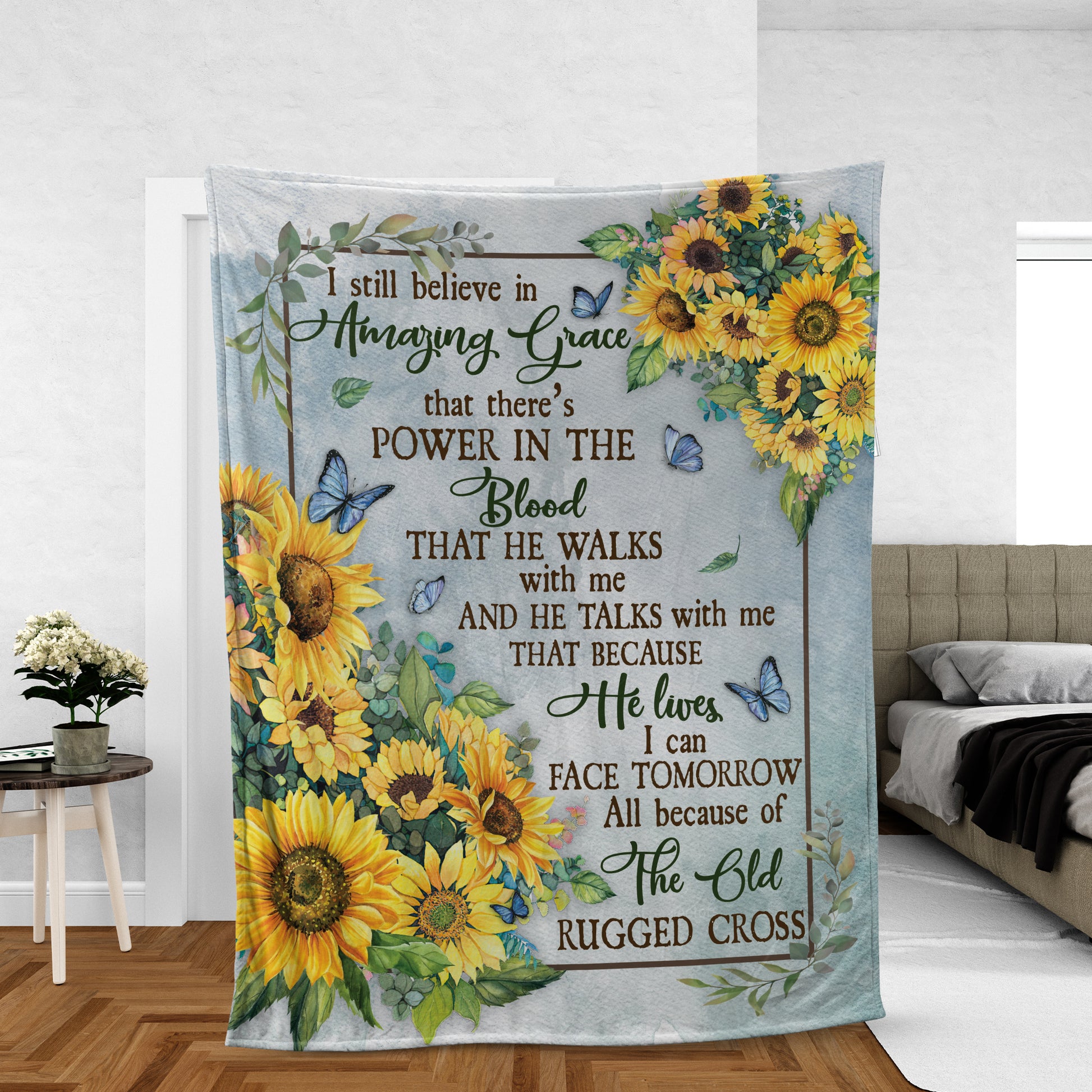 Sunflower Throw Blanket, Christian Throw Blanket, Faith Blanket, Jesus Blanket, Inspirational Gift - I Still Believe In Amazing Grace