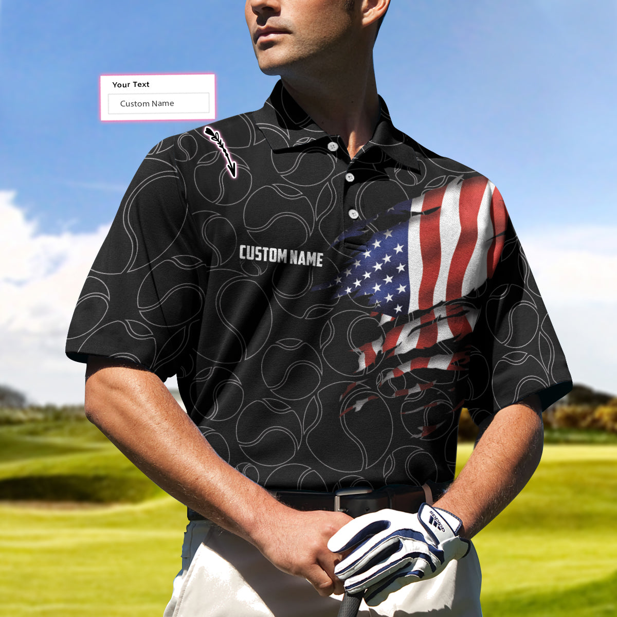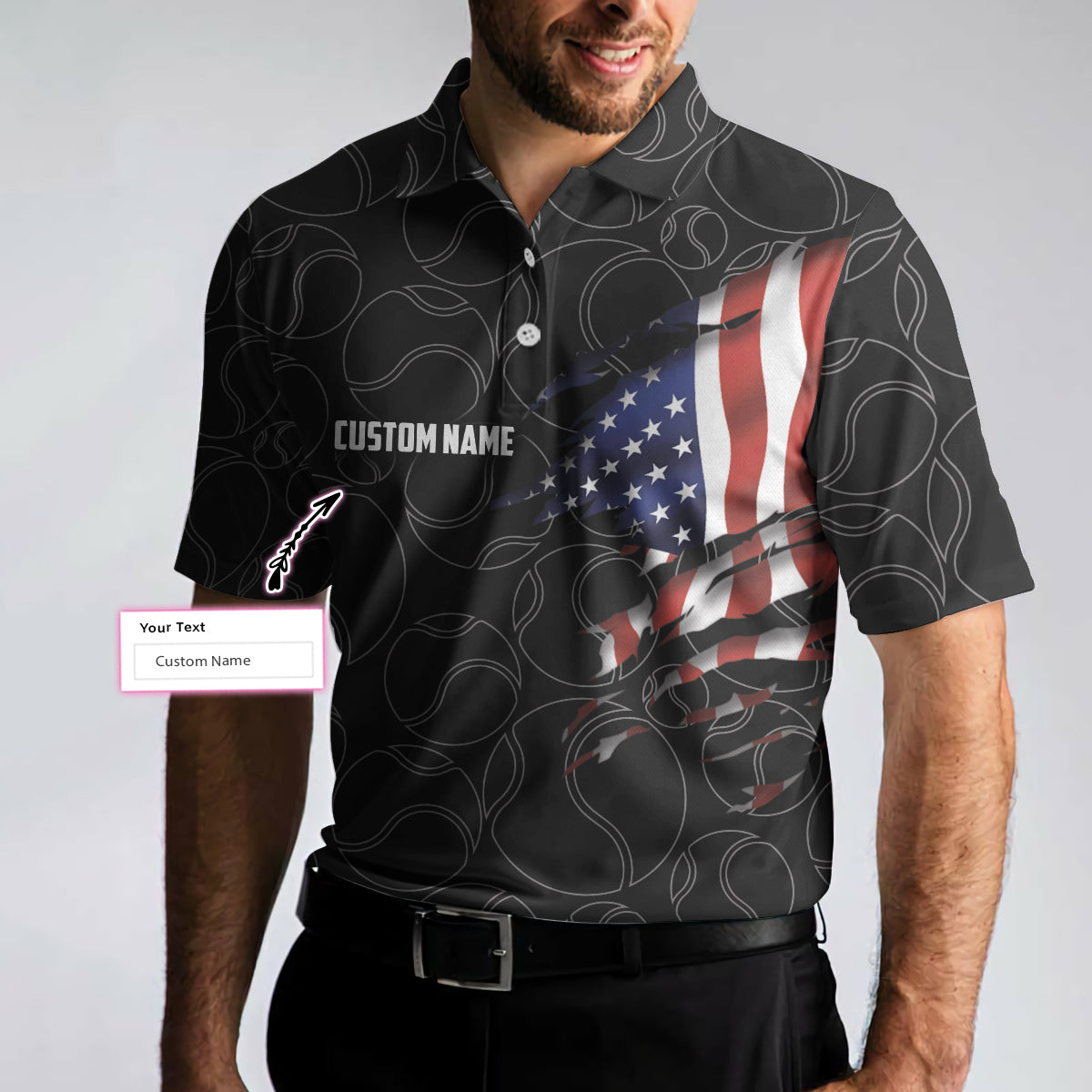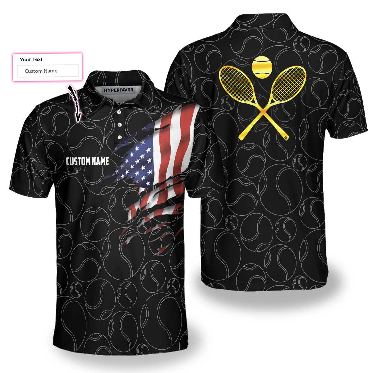 Tennis American Flag Custom Name Polo Shirt, Personalized American Flag Tennis Polo Shirt For Men, Tennis Gift For Male Players - Perfect Gift For Men