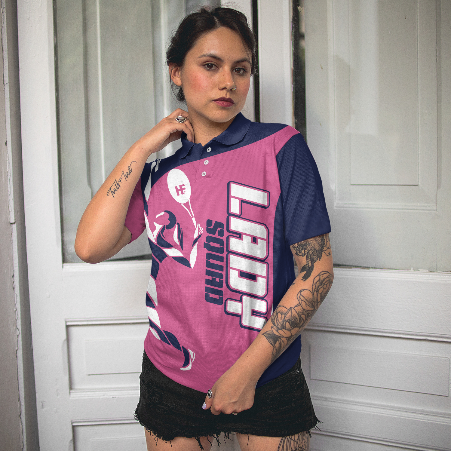 Tennis Lady Squad Short Sleeve Women Polo Shirt, Pink And Navy Polo Shirt For Female Tennis Players - Perfect Gift For Women, Ladies