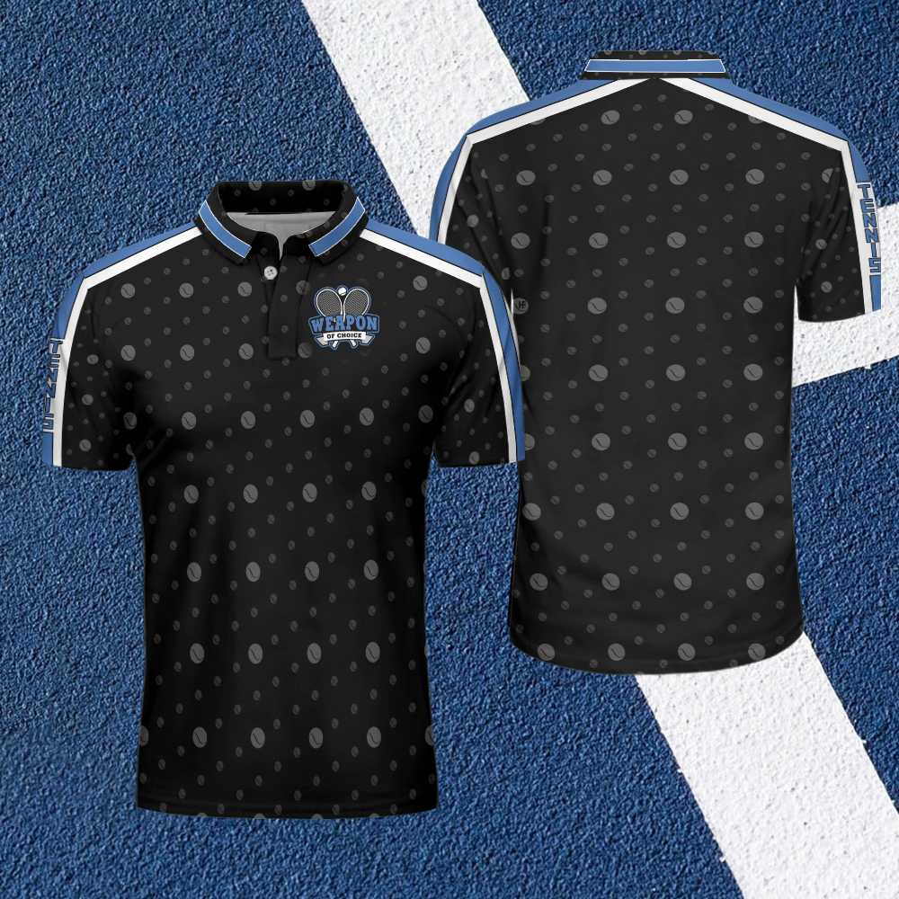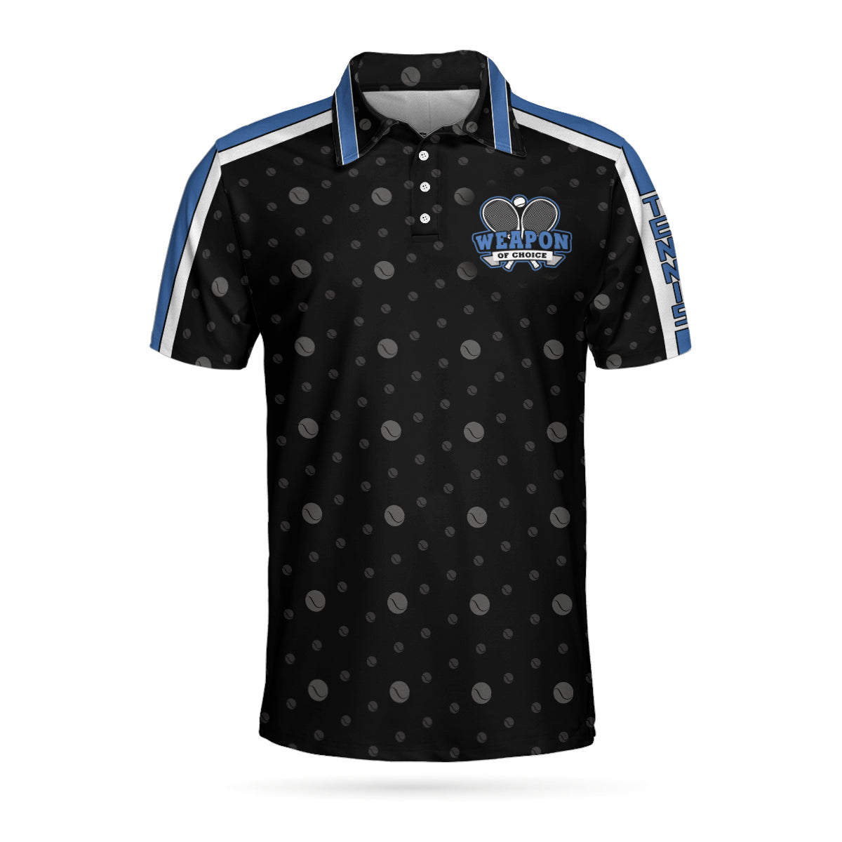 Tennis Polo Shirt, Weapon Of Choice Hard Version Short Sleeve Polo Shirt, Black Tennis Pattern Polo Shirt - Best Tennis Shirt For Men, Tennis Players