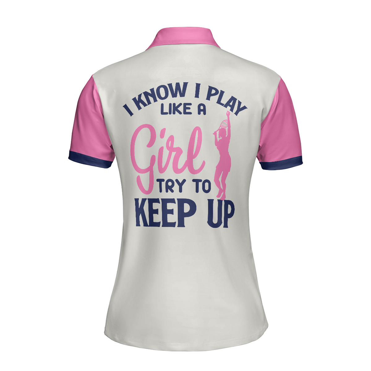 Tennis Women Polo Shirt, I Know I Play Like A Girl Polo Shirt, White And Pink Tennis Shirt For Ladies - Gift For Women, Ladies, Tennis Players