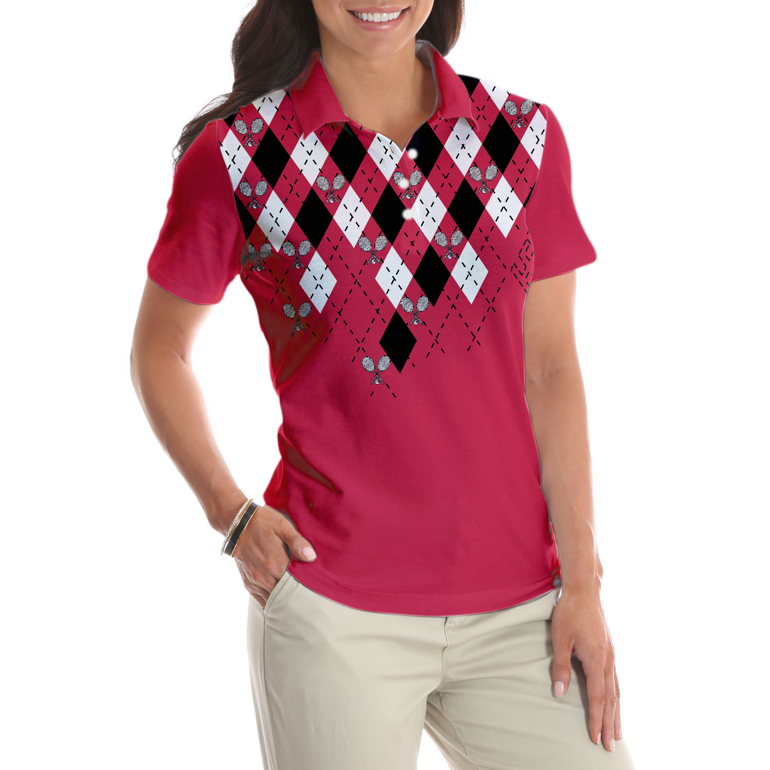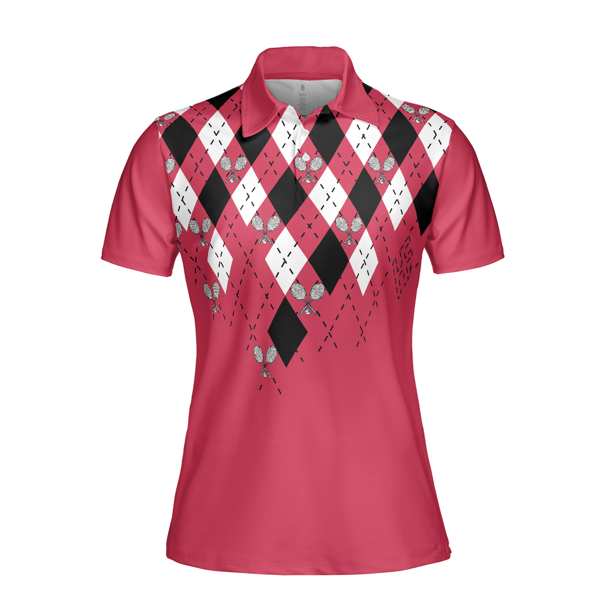 Tennis Women Polo Shirt, Tennis Shirt With Argyle Pattern Short Sleeve Women Polo Shirt - Perfect Gift For Women, Ladies