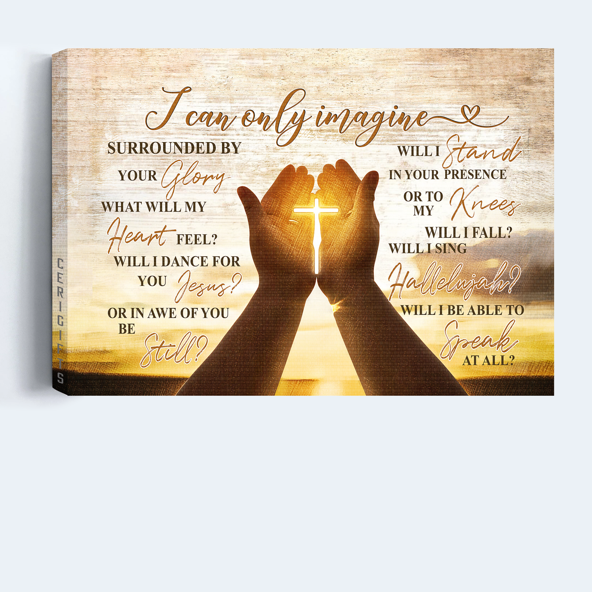 God, Faith, Jesus - Landscape Canvas, Christian Wall Art - Awesome Cross Landscape Canvas, Pray Landscape Canvas, Hold Cross Landscape Canvas - The Cross On Hands Landscape Canvas - I can only imagine Jesus Landscape Canvas Prints - Wall Decor Framed Gift For Christian, Believe in Jesus.