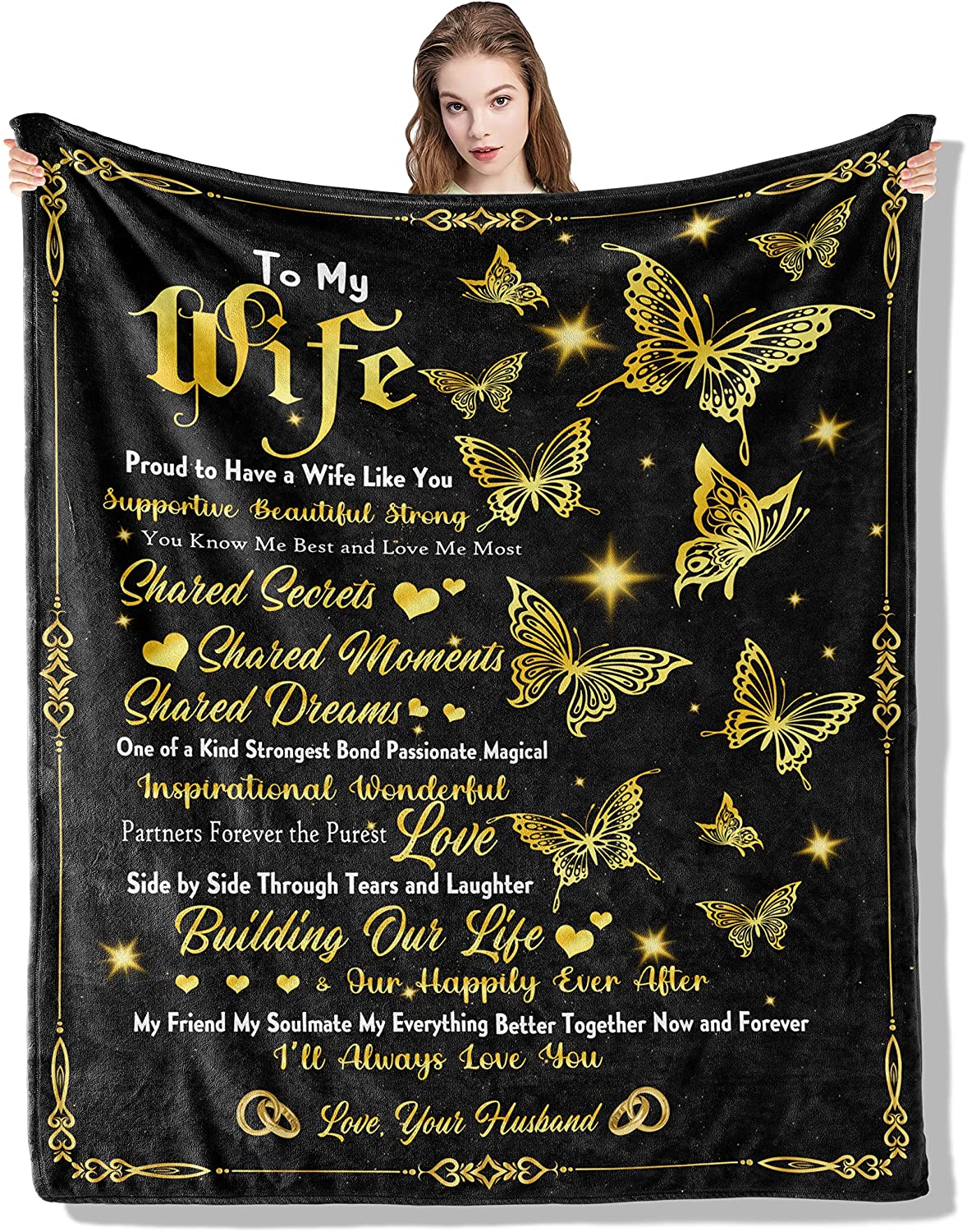 🎁 Romantic anniversary gift for her: To my wife blanket filled with romantic sweet words. A anniversary for wife gift from husband, gift for lover, fiancée, girlfriend from boyfriend way for the give to express love, wife blanket like a big hug, make she feel warm and loving. It's a great idea to say I love you gift as 2 year, 4th, 9th, 10 year, 15 year, 20th, 35th or 5 year anniversary gift for her.