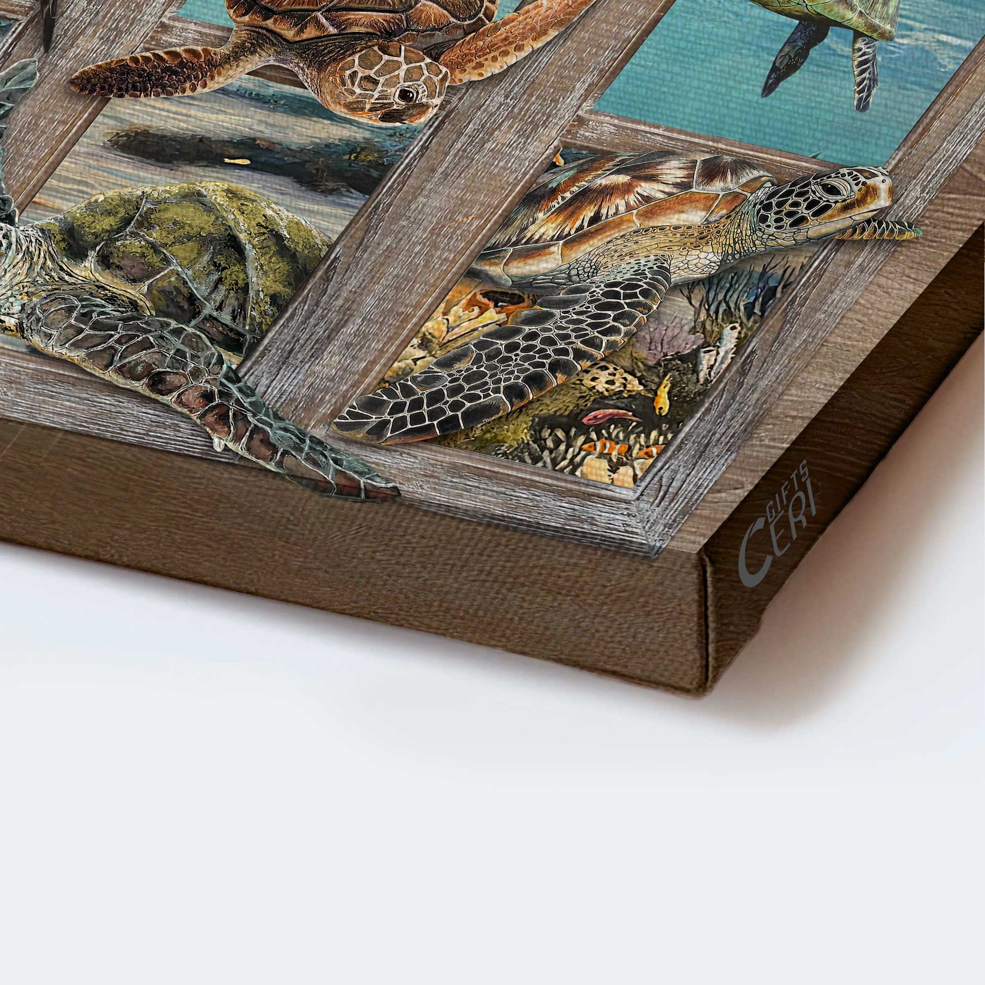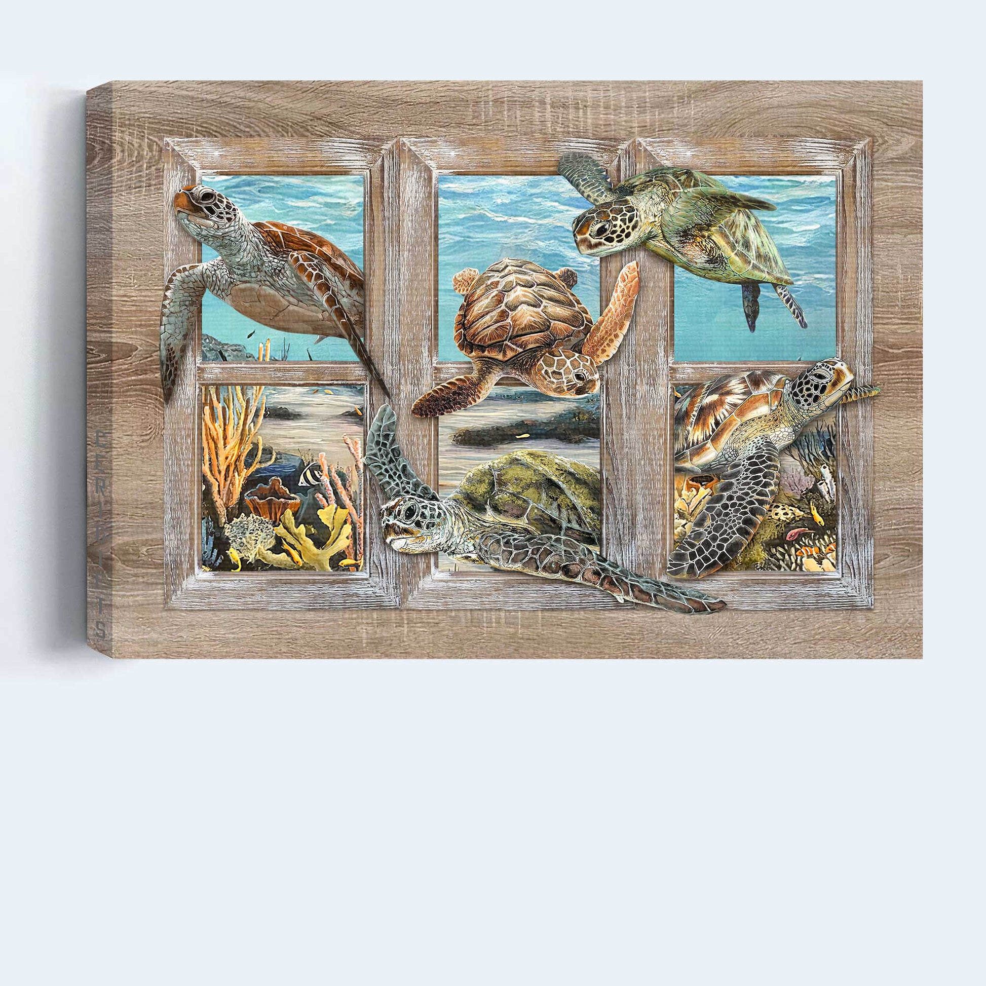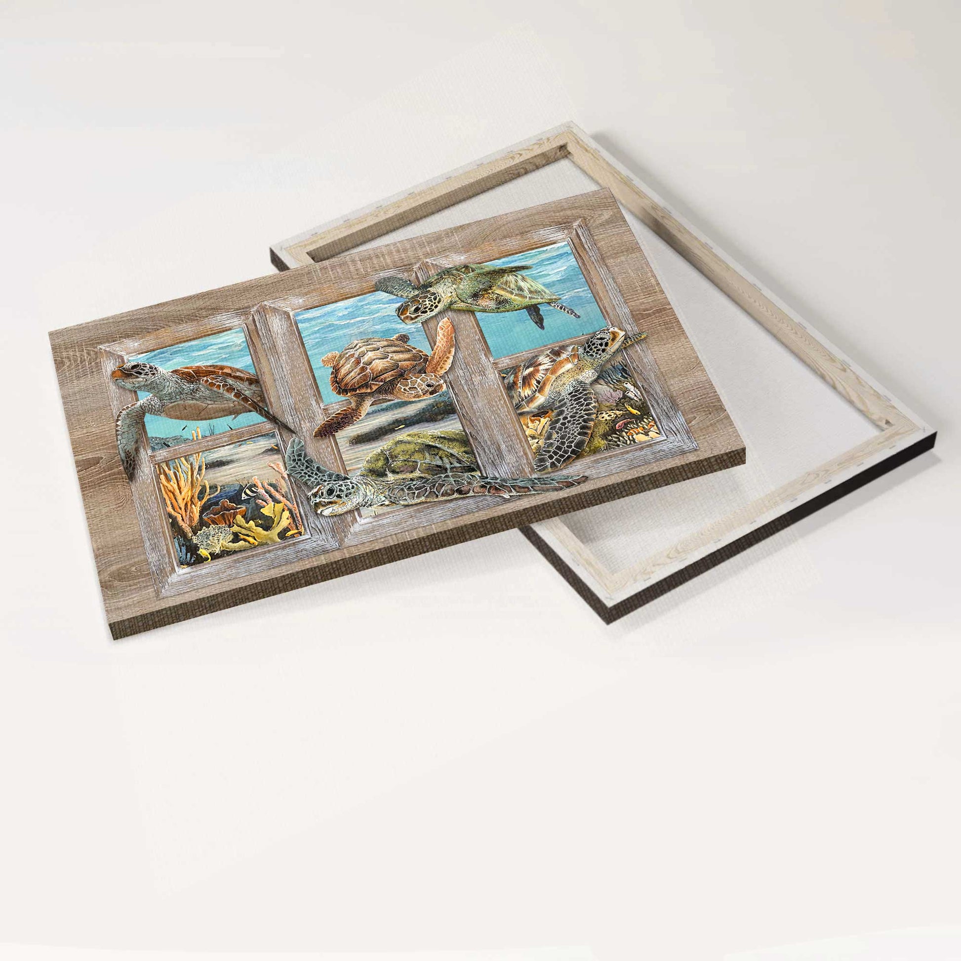 Turtle Landscape Canvas - Turtle Painting, Window Frame, Ocean World Canvas - Gift For Christian - Beautiful Coral Reef Canvas
