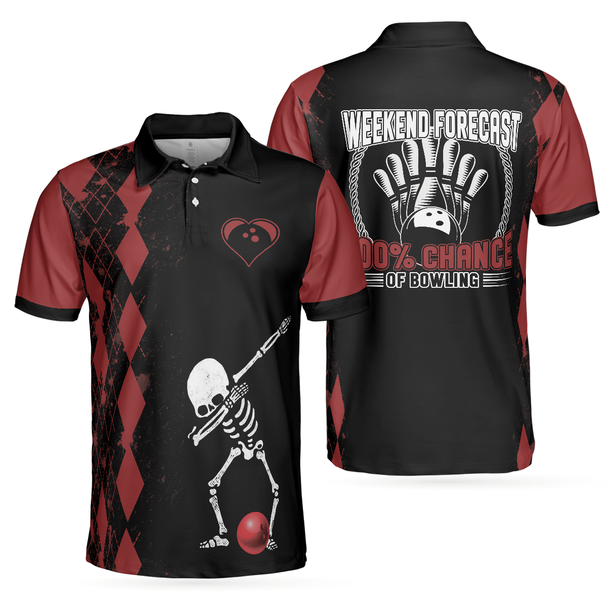 Weekend Forecast Chance Of Bowling Polo Shirt, Red Argyle Short Sleeve Bowling Shirt For Male Players - Perfect Gift For Men, Bowlers