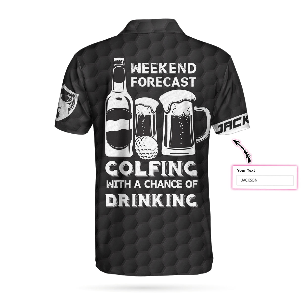 Weekend Forecast Drinking Custom Name Polo Shirt, Personalized Black American Flag Golf Shirt For Men - Perfect Gift For Men, Golfers