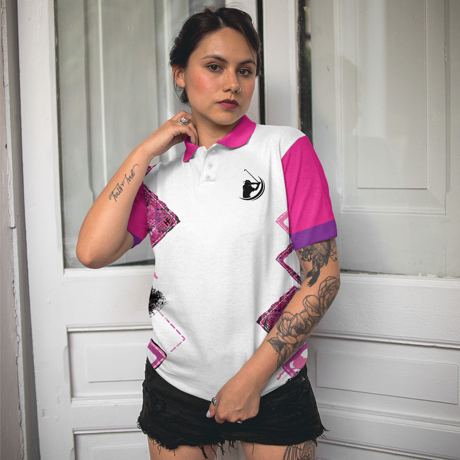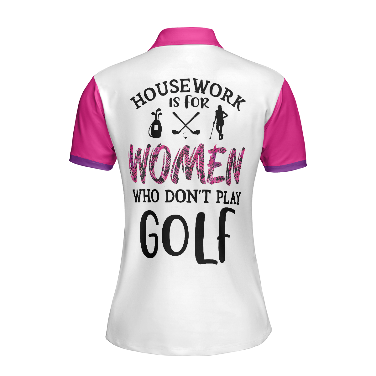 White And Pink Argyle Pattern Golf Women Polo Shirt, Housework Is For Women Who Don't Play Golf Short Sleeve Shirt For Ladies