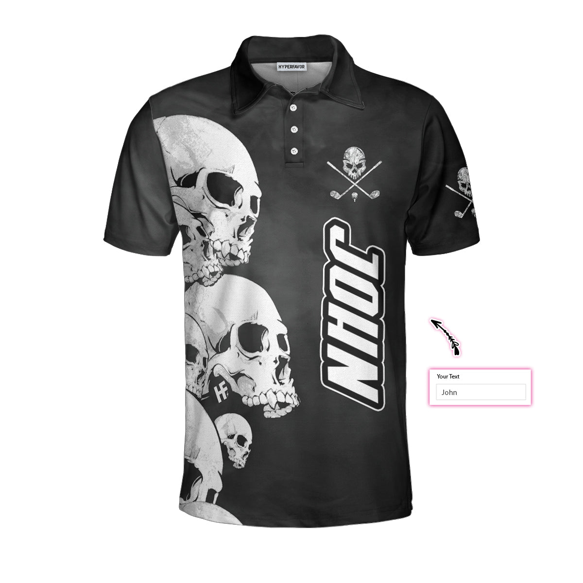 White Skull Heads And Golf Custom Polo Shirt, Personalized Halloween Gift For Golfers, Scary Golf Shirt - Perfect Gift For Men