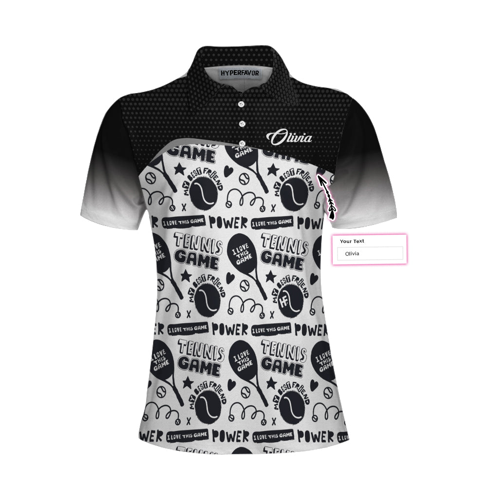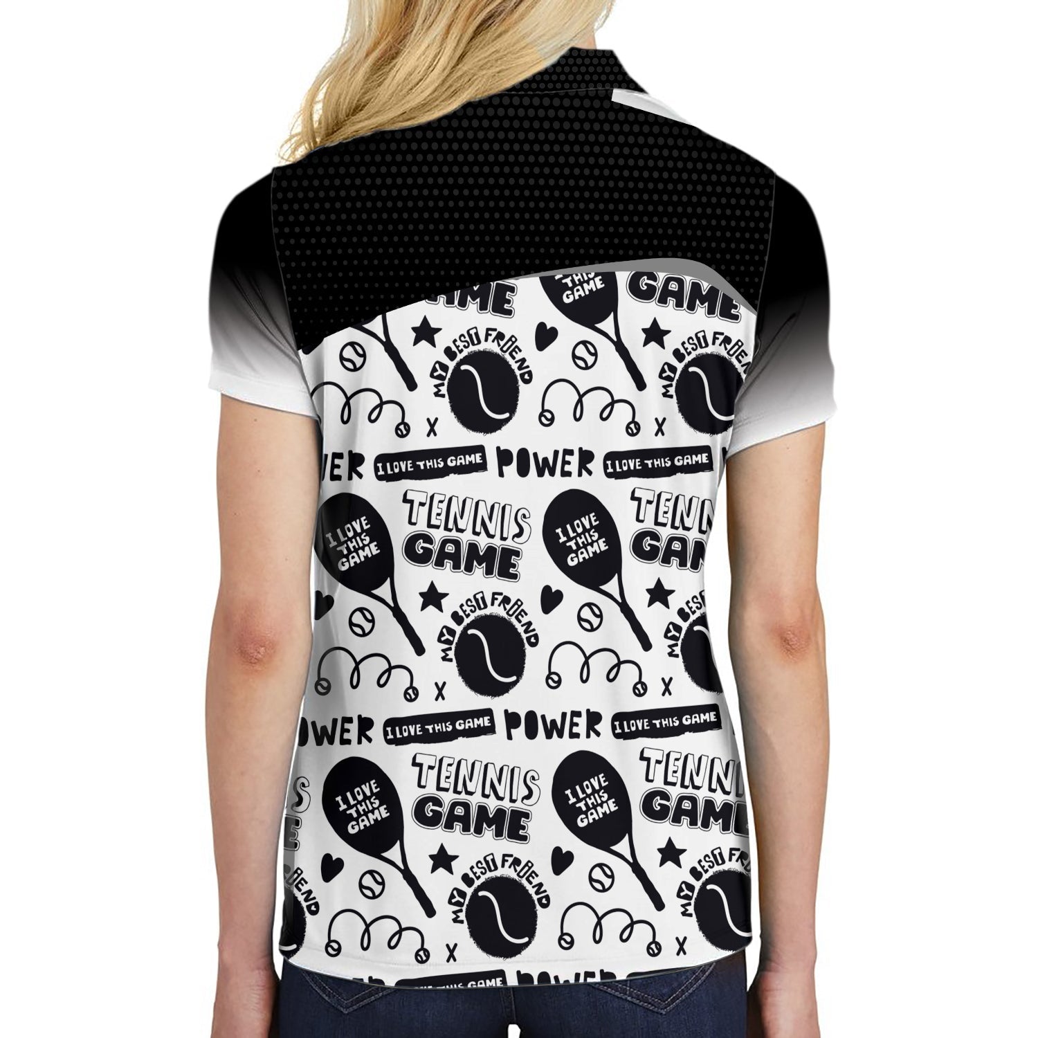 Women Polo Shirt - Black And White I Love Tennis Game Custom Short Sleeve Women Polo Shirt