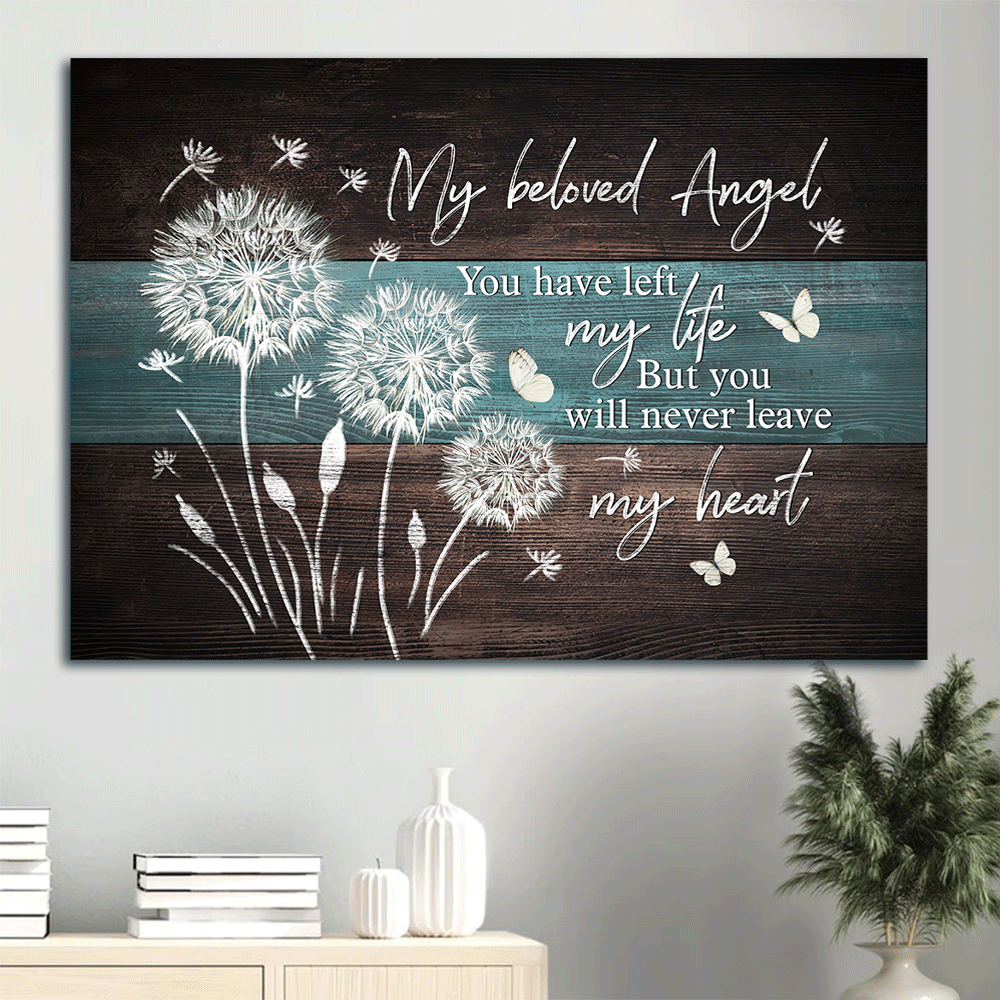Heaven Landscape Canvas - Wooden Background, Dandelion Painting, Memorial Canvas - Memorial Gift For Member Family - You Will Never Leave My Heart Canvas Prints, Wall Art is an emotional picture that can be decorated in any room in homes such as living room, bedroom, or even outdoor space.