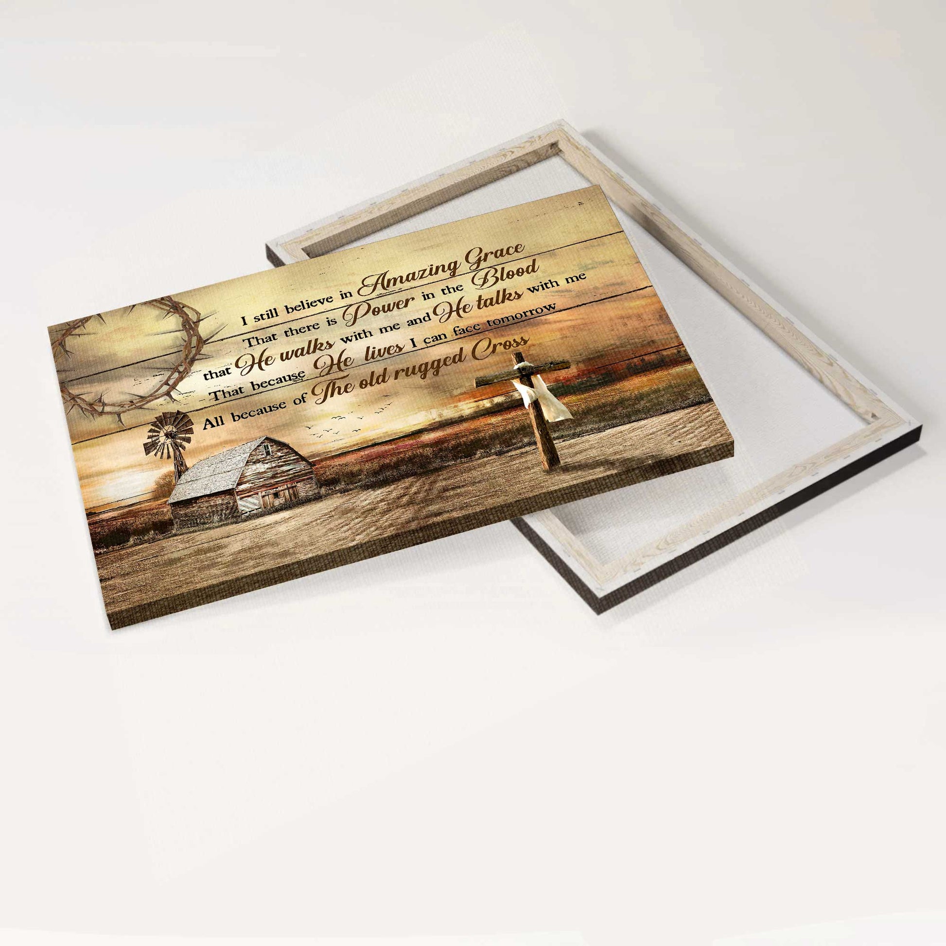 Jesus Landscape Canvas - Wooden Cross, Farm Sunset Canvas - Gift For Christian - I Still Believe In Amazing Grace Canvas
